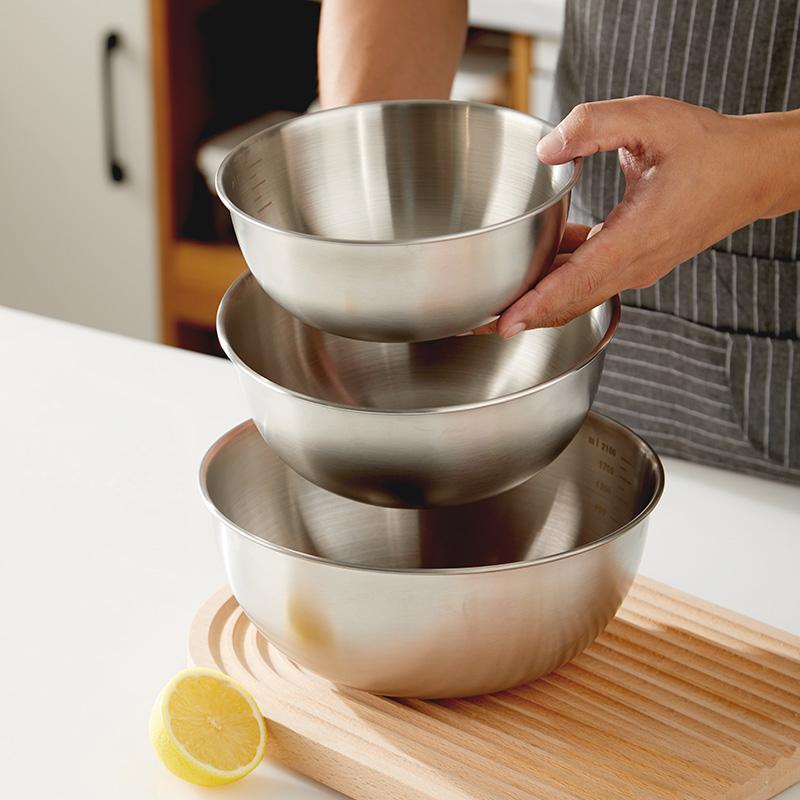 Салатницы для фруктов из нержавеющей стали нового стиля со шкалой, металлические вложенные друг в друга миски для холодной лапши, контейнеры для хранения продуктов, кухонная утварь