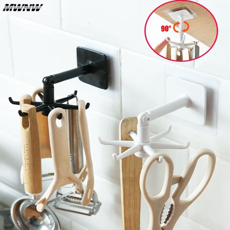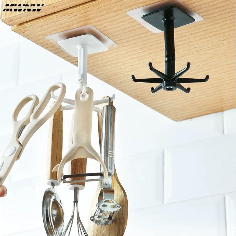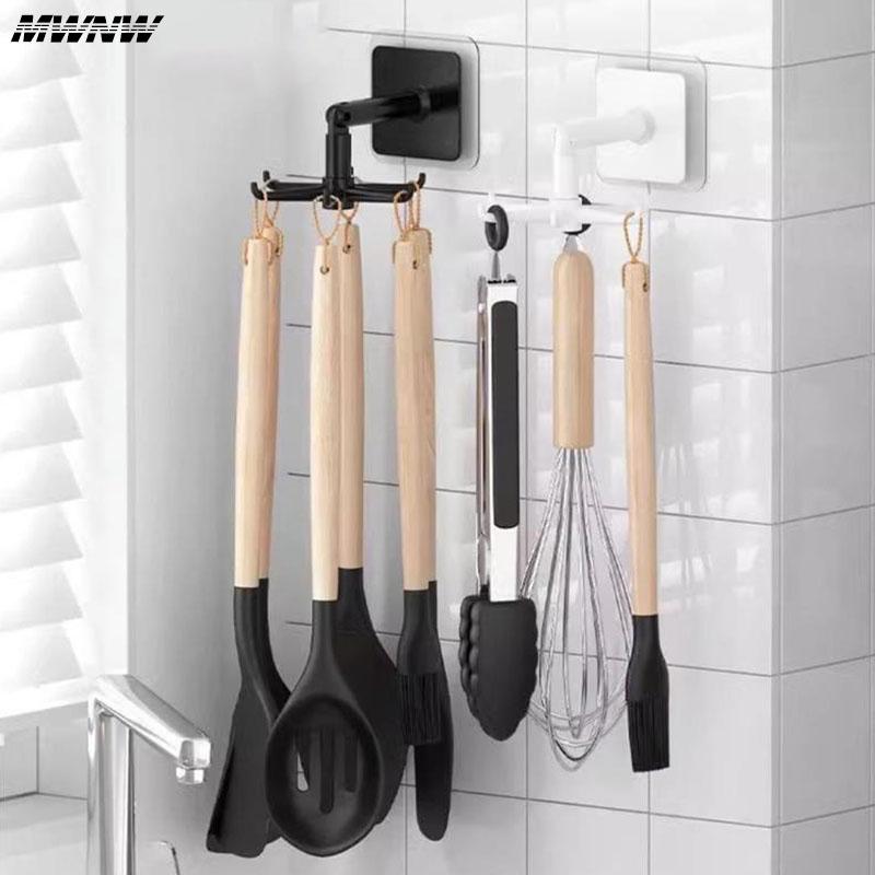 Вращающийся держатель для кофейных чашек с 6 крючками, черно-белая полка с крючками, многофункциональный кухонный шкаф, органайзер для хранения всякой всячины, вешалка