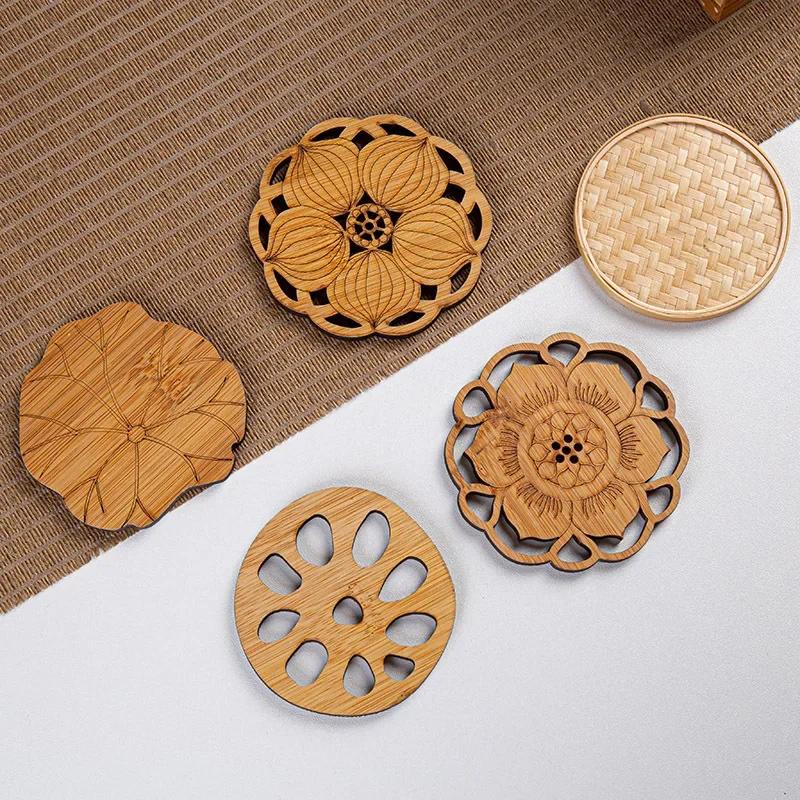 Креативные подставки для напитков с цветком лотоса, деревянный круглый коврик для чашки, настольный коврик, кружка для чая, кофе, подставка для столовых приборов, украшение дома, кухонные аксессуары