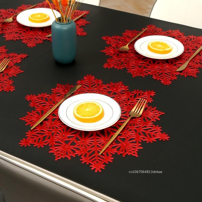 Рождественский нескользящий коврик для стола, декоративный новогодний подстаканник в виде снежинки, нескользящий, с выемкой, легко моется
