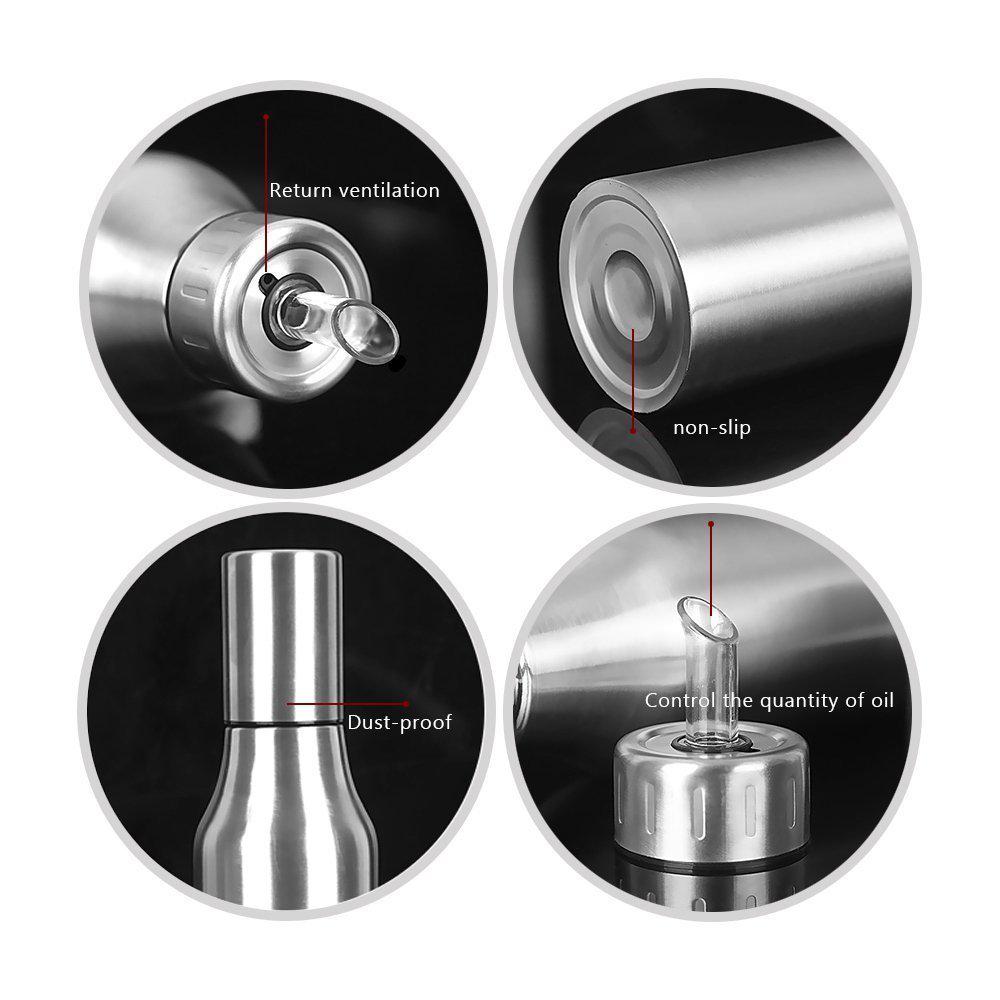 100% БЕЗОПАСНО ДЛЯ ПИЩЕВЫХ ПРОДУКТОВ — дозатор масла, изготовленный из пищевой нержавеющей стали марки 304, обеспечивает долговечность и небьющийся тест на использование. Полированный корпус выглядит великолепно и изысканно. Диспенсер для масла не содержит бисфенол А и оснащен пылезащитной крышкой.. 500 мл, 750 мл, 1000 мл три разных объема на выбор;ЧИСТОТА — конструкция, исключающая протечки масла, и точный контроль за его использованием, что позволяет избежать отходов и полезно для здоровья, сохраняя кастрюлю чистой и сухой.. Большое отверстие для удобства заправки масла. Крышка защищает масло от пыли. ДЕТАЛЬНАЯ КОНСТРУКЦИЯ - конструкция верхнего отверстия, образование воздушной конвекции, контроль скорости масла и плавность. Бутылка из нержавеющей стали устойчива к нагреванию. ЛЕГКО ЧИСТИТЬ — легко мыть вручную или в посудомоечной машине.. Позволяет легко контролировать уровень содержимого. С крышкой, которая может защитить горлышко бутылки от бактерий/пыли в воздухе. ПРАКТИЧНО - обеспечивает три объема использования: 500 мл, 750 мл, 1000 мл. Идеально подходит для растительного масла, оливкового и рапсового масла, уксуса, соевого соуса, бальзамического уксуса и т. д.. может использовать дома, бар, кафе, отель, ресторан, вечеринка, шведский стол и т. Д.
