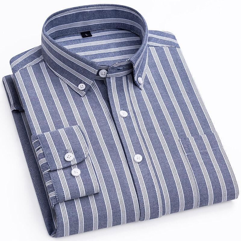 Весна Осень Мужские Деловые Повседневные Рубашки Модные Полосатые Длинные Рукава Квадратный Воротник Оксфорд Текстильная Рубашка Мужские Топы Большие Размеры