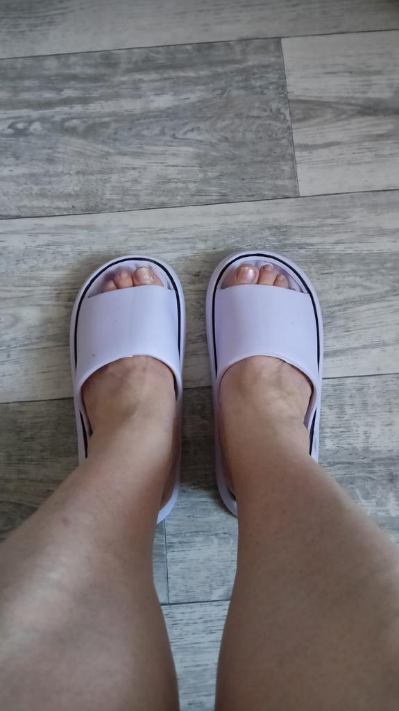 Тапки отличные с размером угадала, мой размер 38, а заказала 40-41. Я не люблю когда пальцы вылазят и весят над землёй, очень даже не красиво. Пальчики легли на тапок и ещё пол/см осталась. По полноте нормально, ноги средней полноты. Рекомендую. Всем добра.