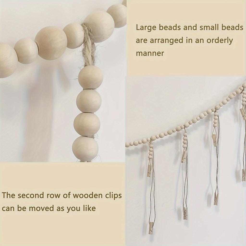 Фотодисплей: Повесьте свои драгоценные фотографии на деревянную нить с бусинами, создав теплую фотостену для запечатления прекрасных моментов жизни.. Будь то семейное фото, пейзаж из путешествия или фотография роста ребенка, вы можете продемонстрировать их таким образом, чтобы они были полны воспоминаний.