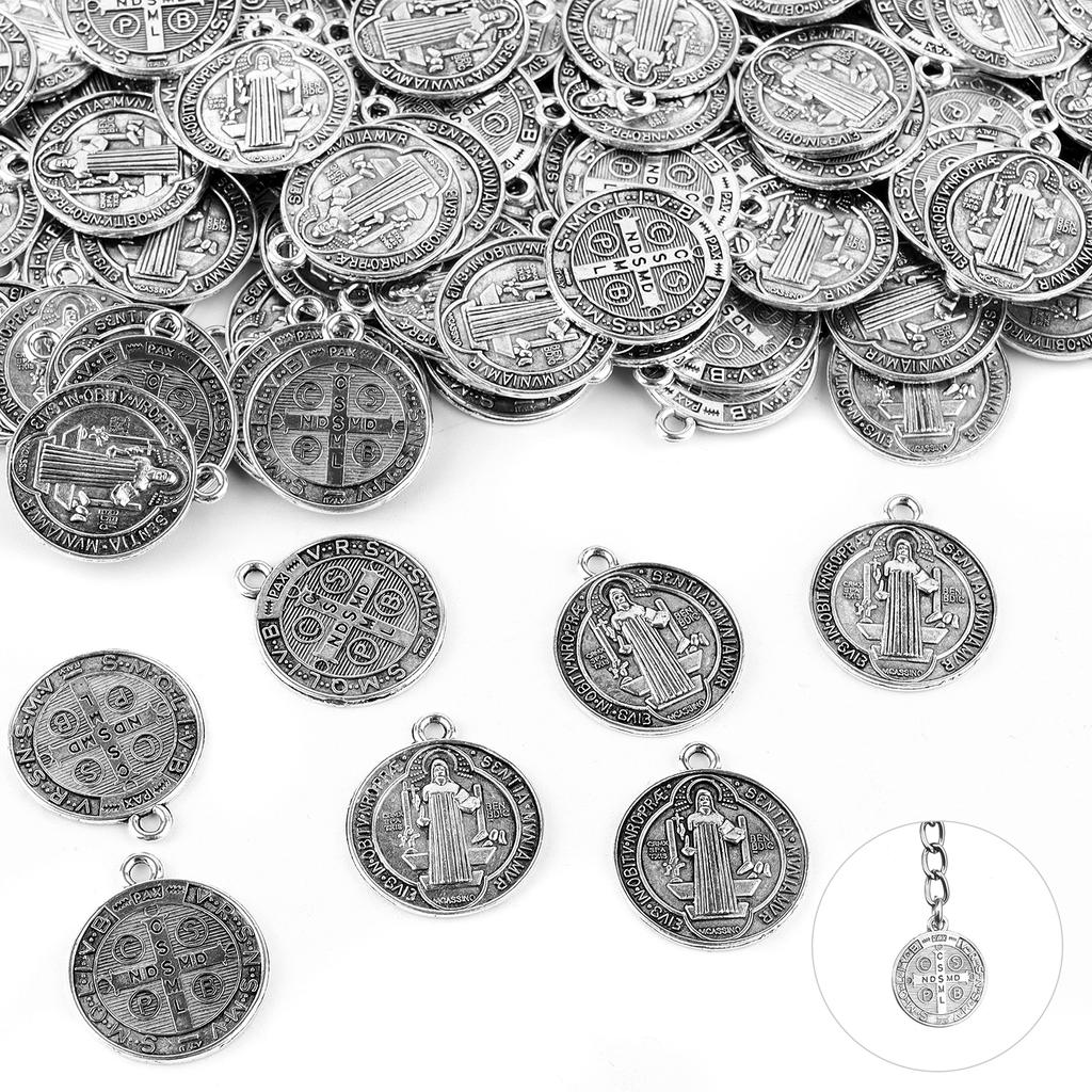 В комплект входит: вы получите 50 серебряных подвесок Saint.Benedict, выполненных с большим мастерством и в достаточном количестве для реализации ваших проектов по рукоделию или замены.