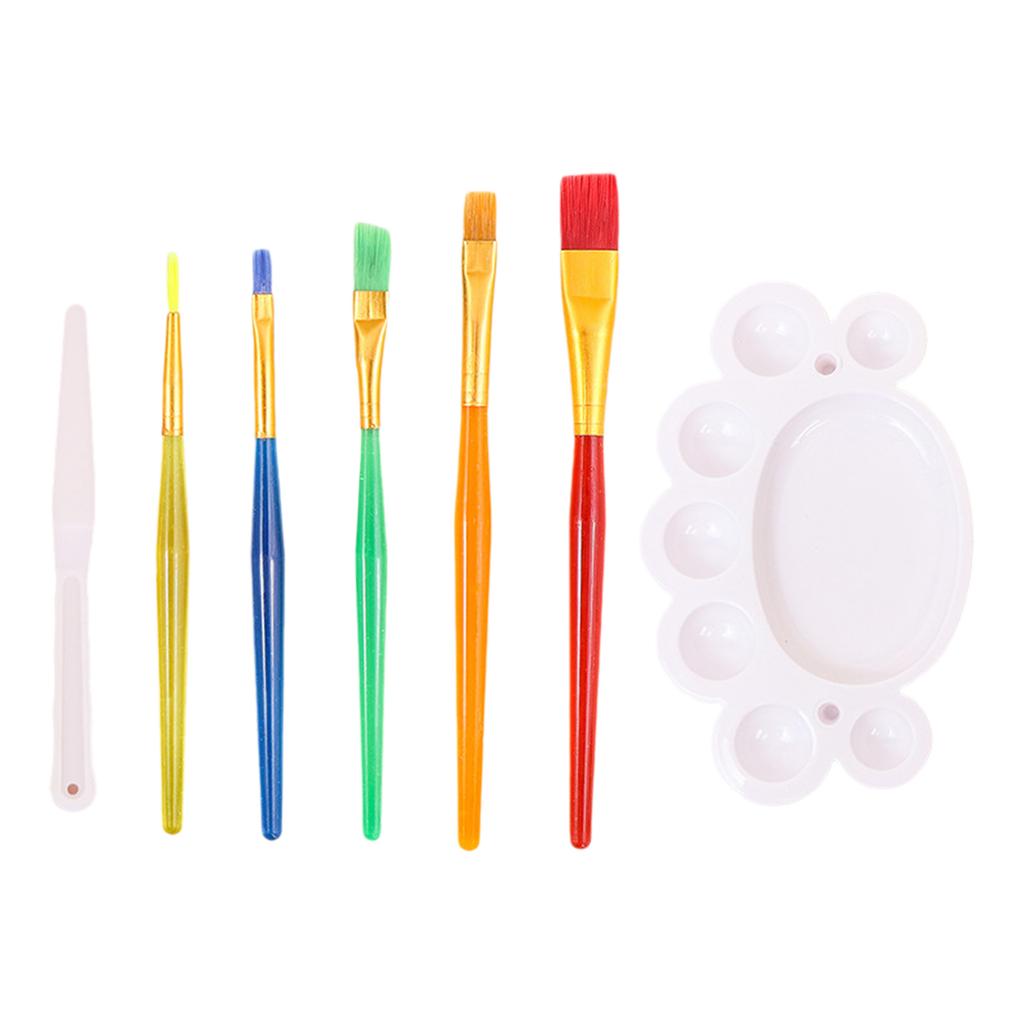 7 шт. набор детских кистей для рисования, палитра, нож для размазывания, кисти для акварели и кисти для рисования с плоским кончиком