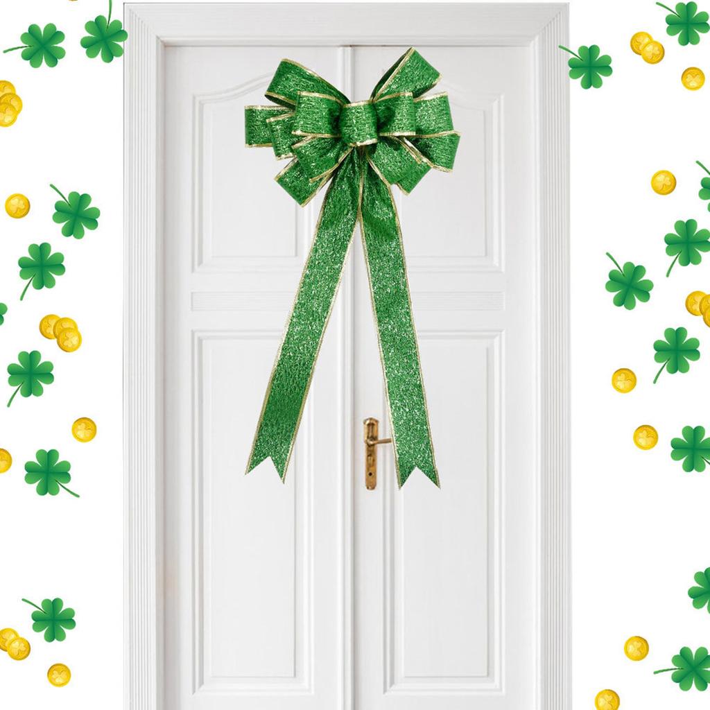 Большой бант для венка из блестящей ленты, зеленый бант для венка, используется для венков, гирлянд, украшений ко Дню Патрика, ирландской вечеринке, рождественской елки или сезонного украшения.