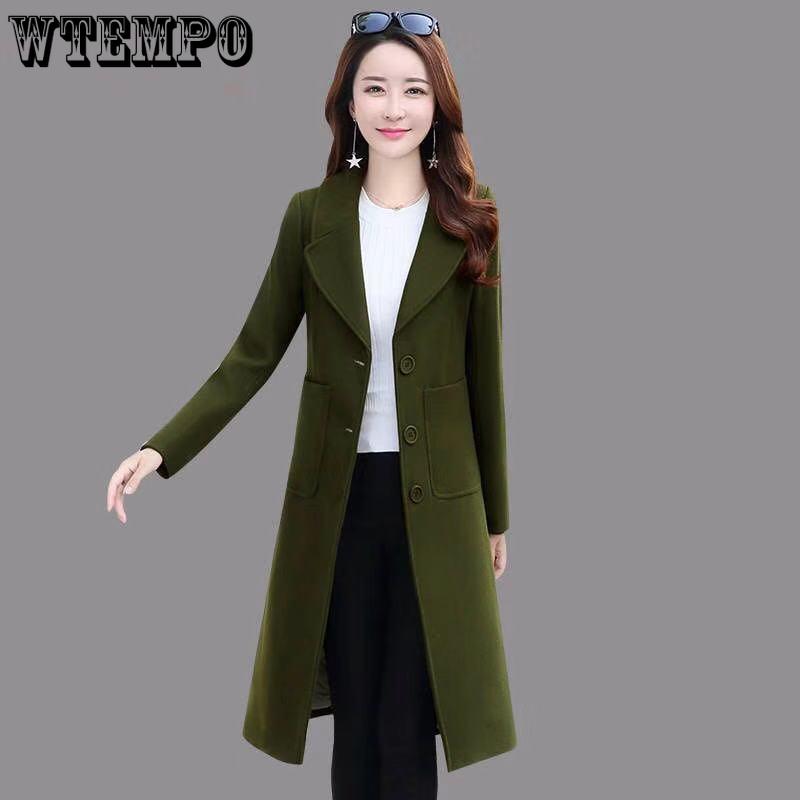 Женское зимнее шерстяное длинное пальто, повседневные однотонные тонкие куртки, теплое пальто и верхняя одежда