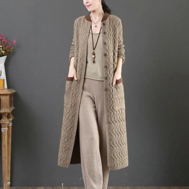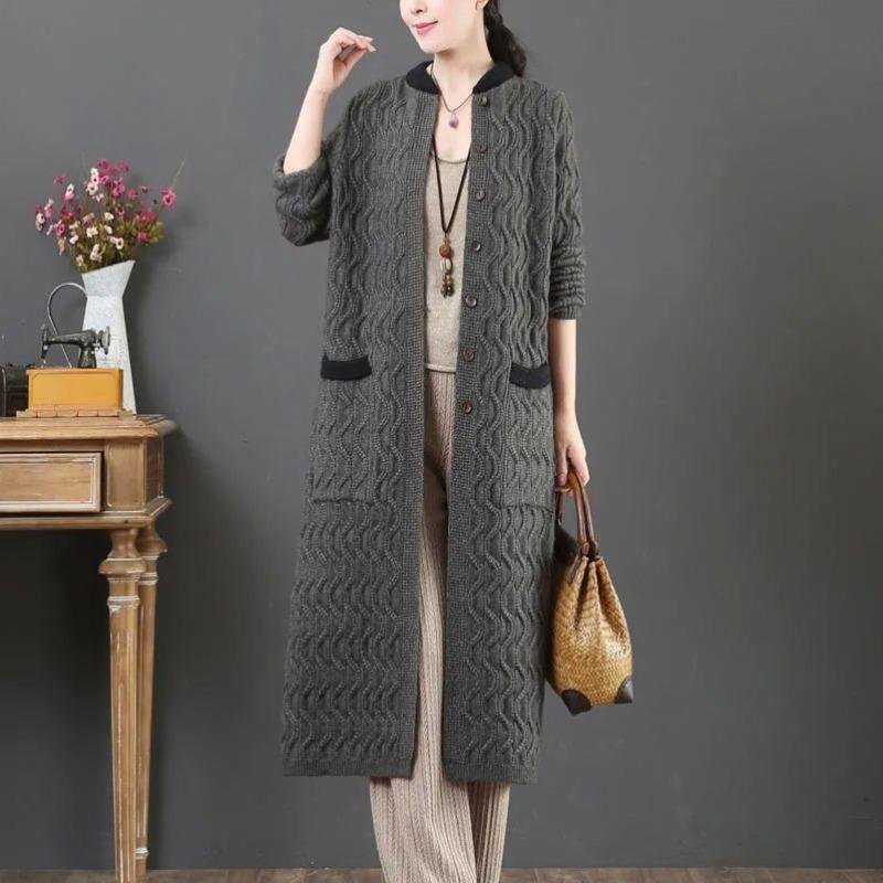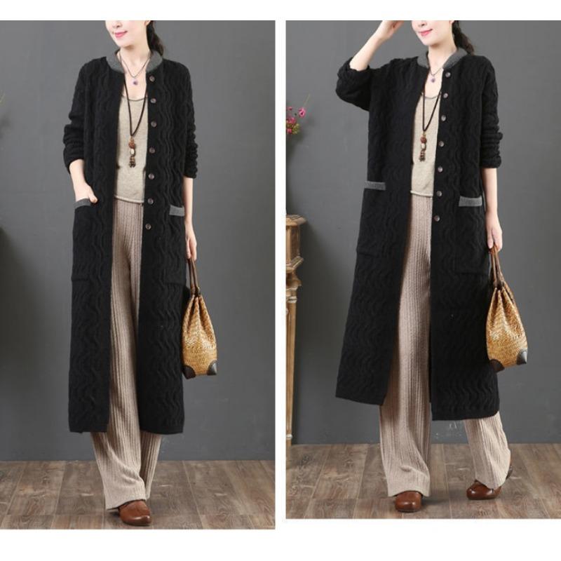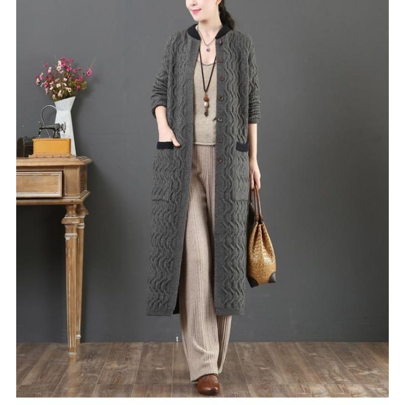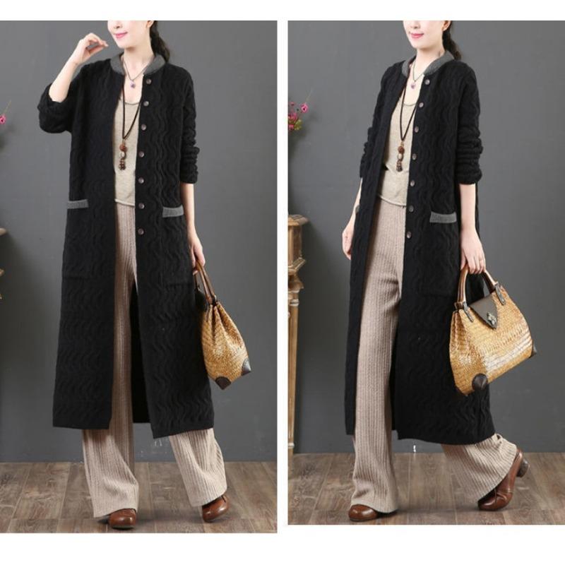 Осенне-зимний утолщенный кардиган, свитер, однотонное длинное вязаное пальто, однотонная вертикальная женская куртка