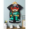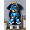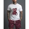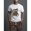 Комплект из 2 предметов: мужская футболка с коротким рукавом и шорты на шнурке с принтом мультяшного медведя, летний повседневный топ, мужские пляжные брюки для спорта на открытом воздухе