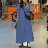 Элегантный модный женский стиль одежды нейтральный стиль длинный рукав кардиган с лацканами однотонные длинные джинсовые повседневные платья
