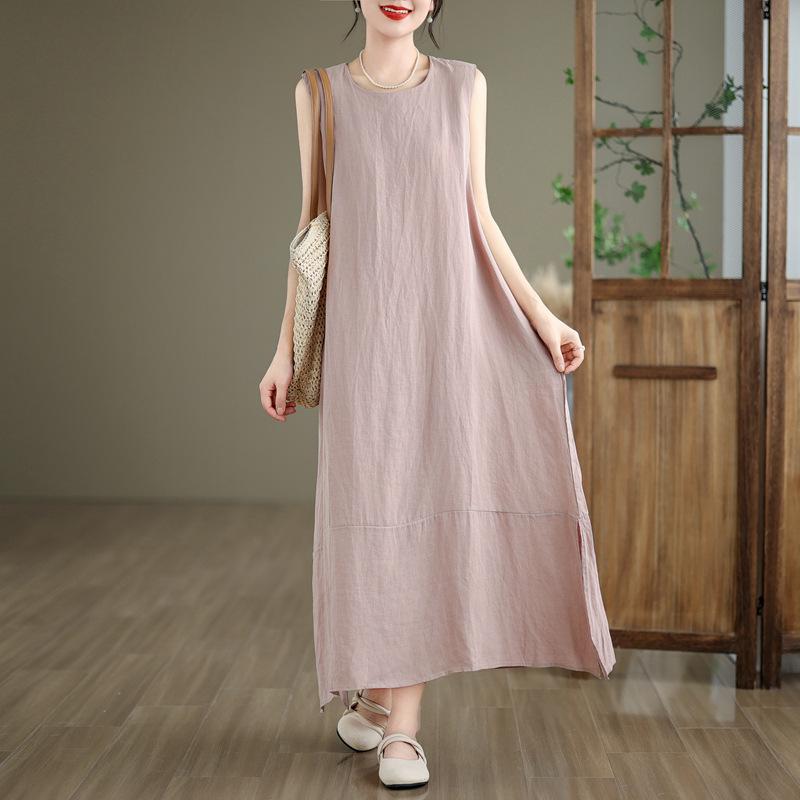 Летнее хлопковое льняное художественное свободное платье-трапеция без рукавов с большим свободным жилетом для женщин, повседневные платья