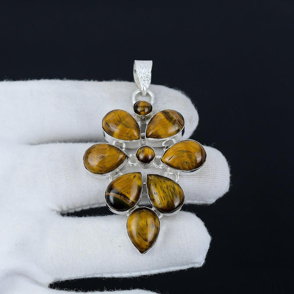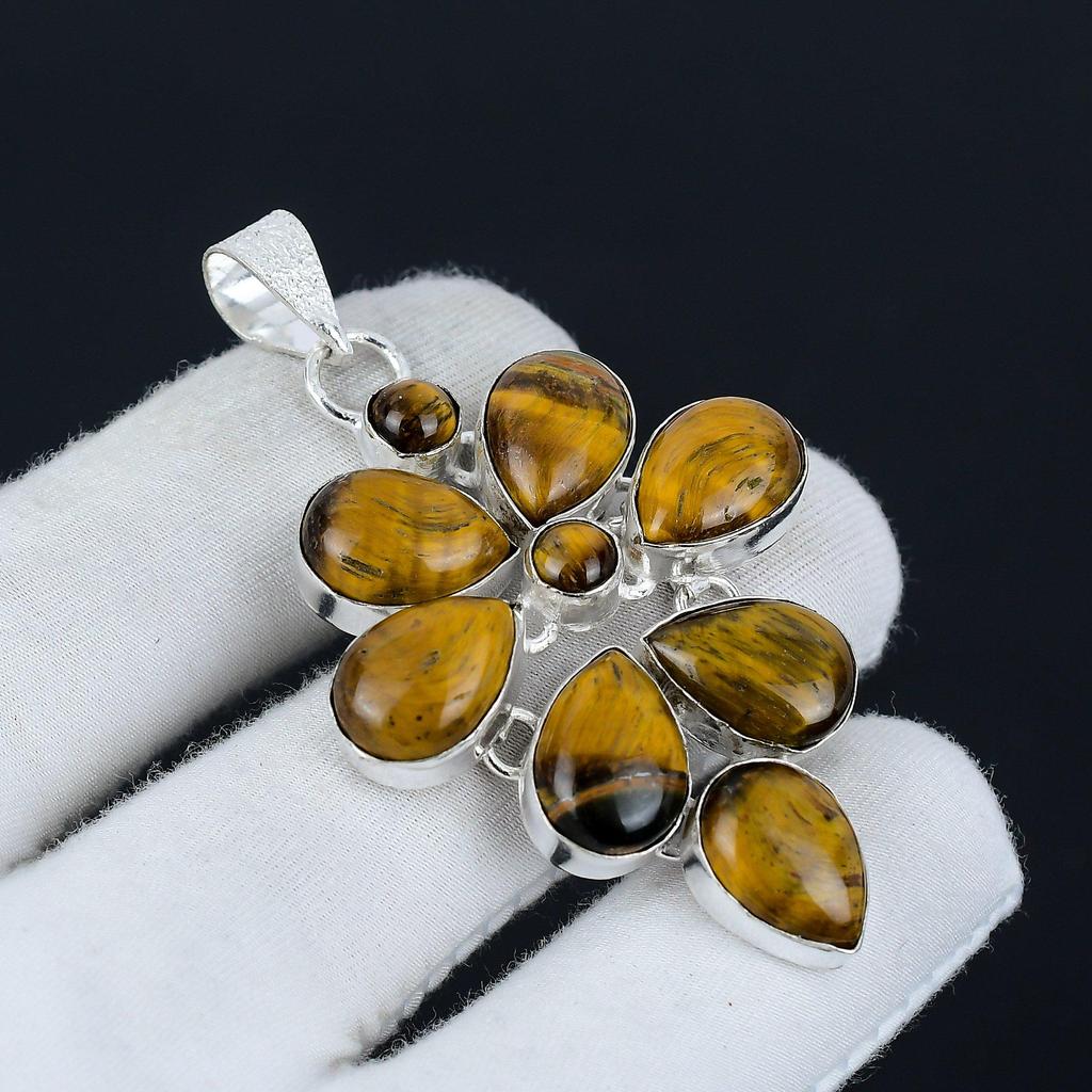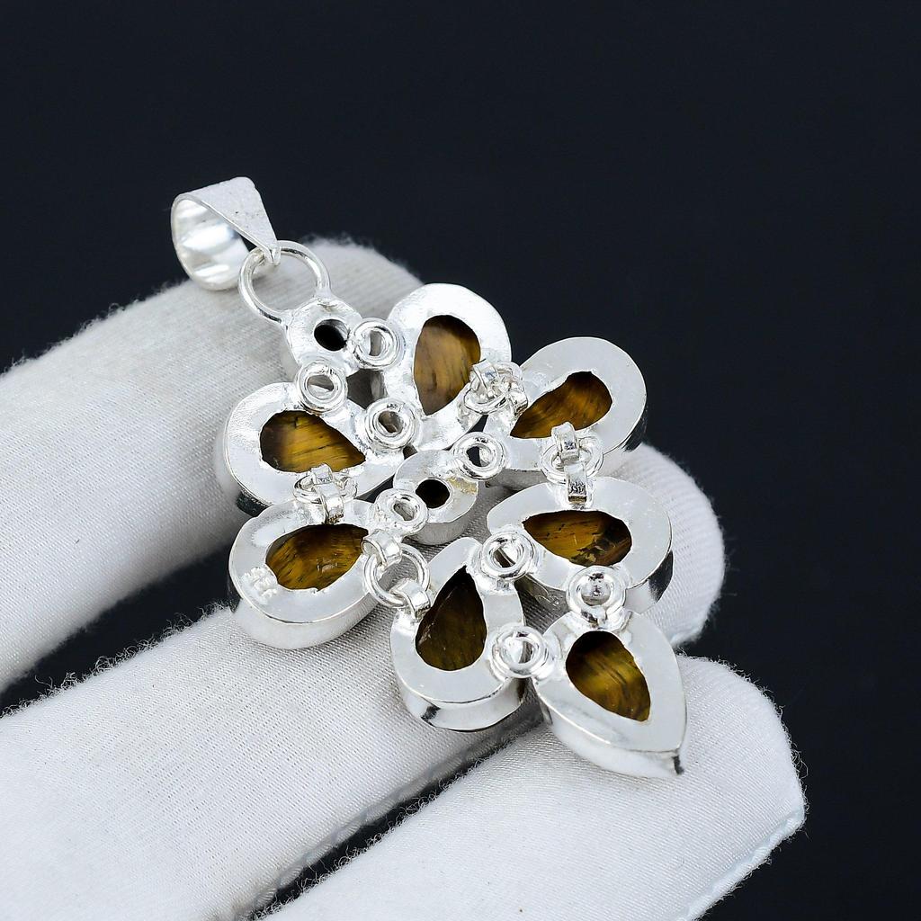 Подвеска из натурального камня тигровый глаз из стерлингового серебра 925 пробы - дизайн в виде цветка ручной работы, идеально подходит для подарков и повседневного ношения. Ювелирные подарки