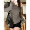 Горячая девушка, свитер с открытыми плечами, косым вырезом, заклепками, горячей драпировкой, длинными рукавами, осень, новый, присборенный на талии эластичный низ сверху