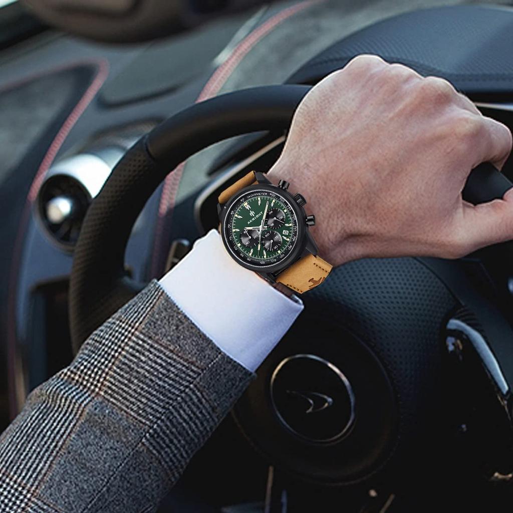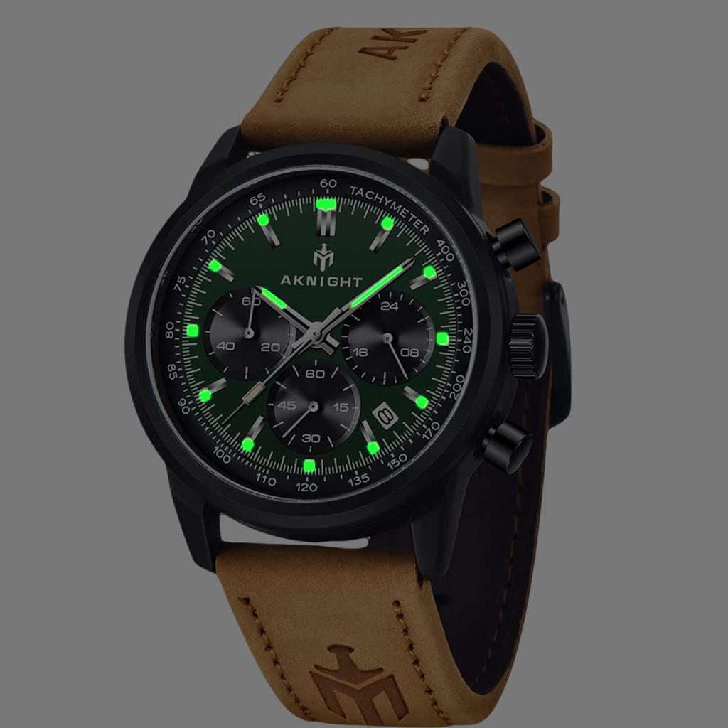 AKNIGHT Натуральная кожа Легко для ношения на руке Мужские часы для японского руководства по эксплуатации Мужские часы, модные, популярные, кварцевые, ремешок, хронограф, кристалл, см.