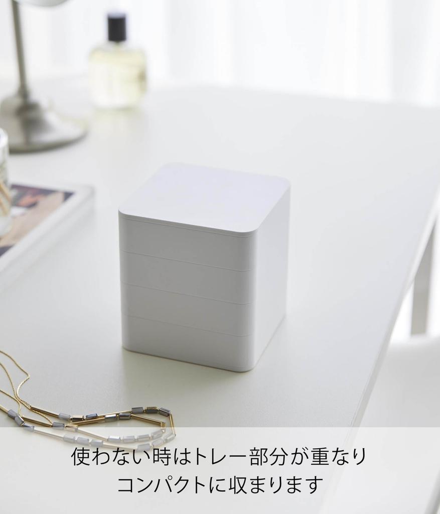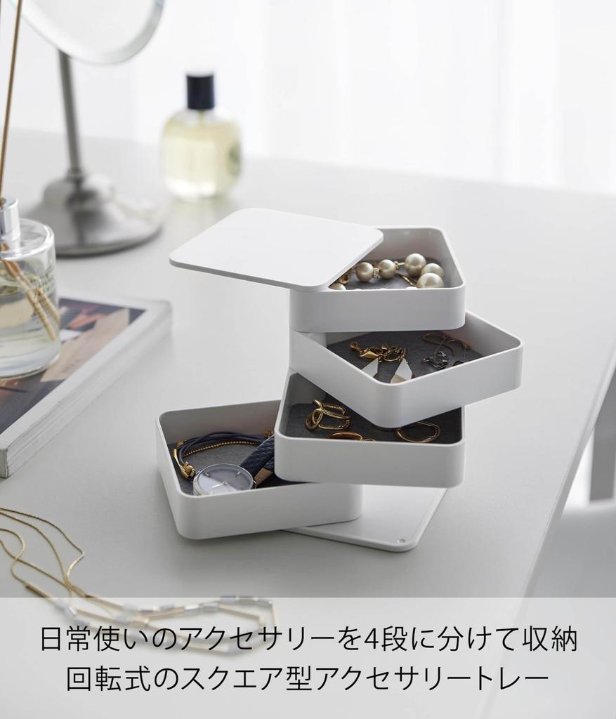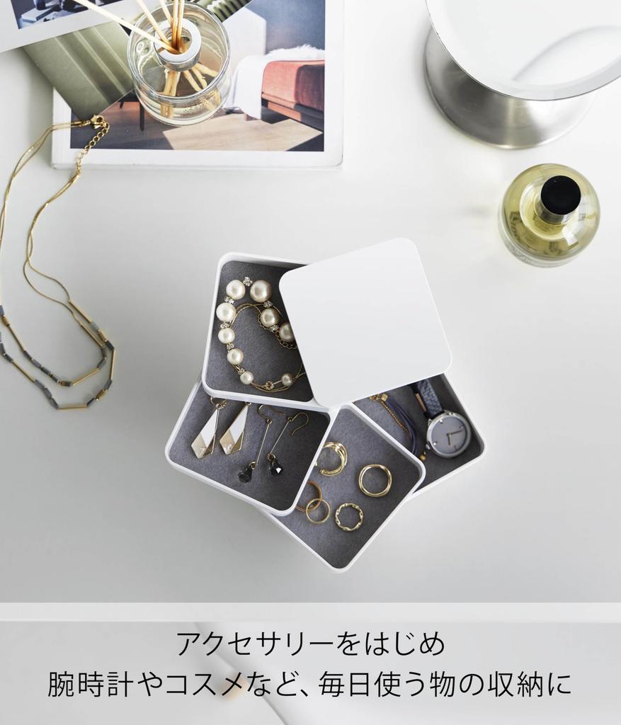 Лоток для аксессуаров Yamazaki Jitsugyo, 4-х уровневый, квадратный, белый, Ш9 x Г9 x В10 см, башня с крышкой, ящик для хранения аксессуаров 1753