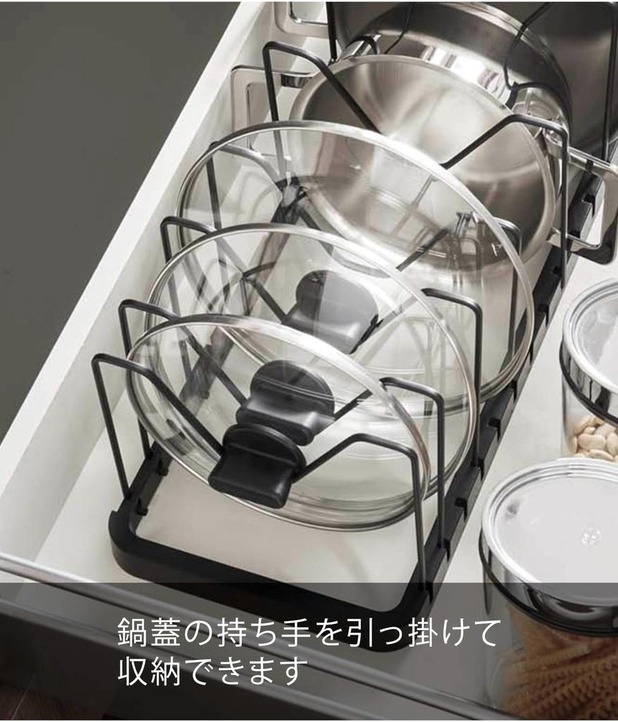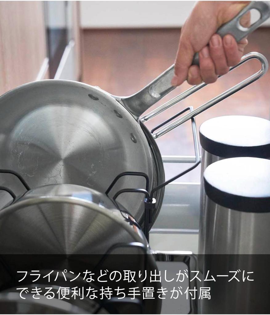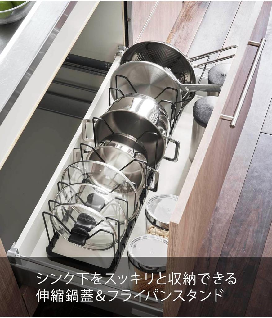 Yamazaki Jitsugyo Под раковиной телескопическая крышка для кастрюли и подставка для сковороды, черная, приблизительно. W45~82 x D20 x H17.5cm Tower Kitchen Storage 3841
