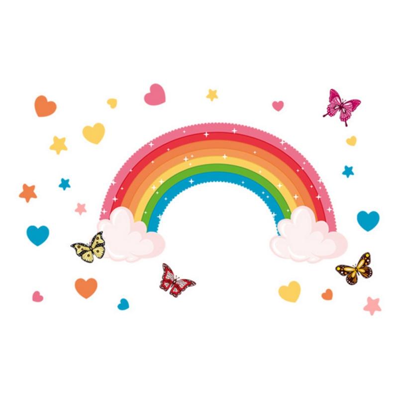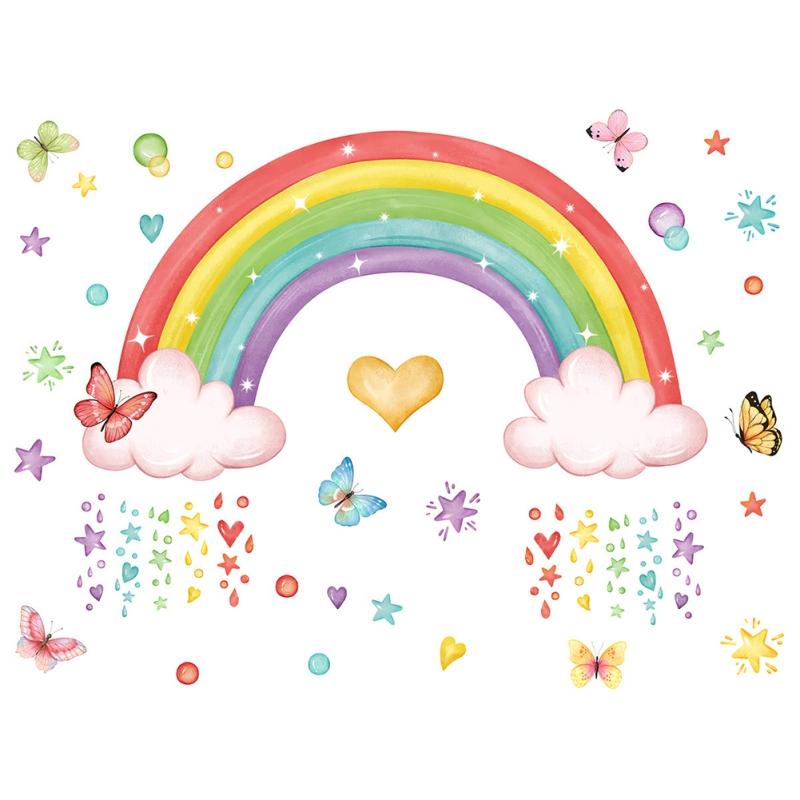 Наклейки на стену с изображением радуги и бабочки из мультфильма для украшения детской комнаты, наклейки на стену для спальни, наклейки на стену для детской комнаты в детском саду