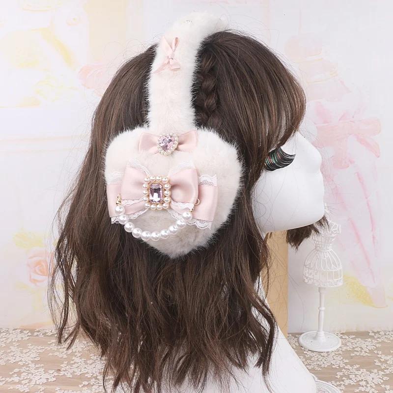 Японские наушники ручной работы Lolita Sweet Big Knot Warm Ear Protector Ear Cover Зимние теплые наушники