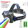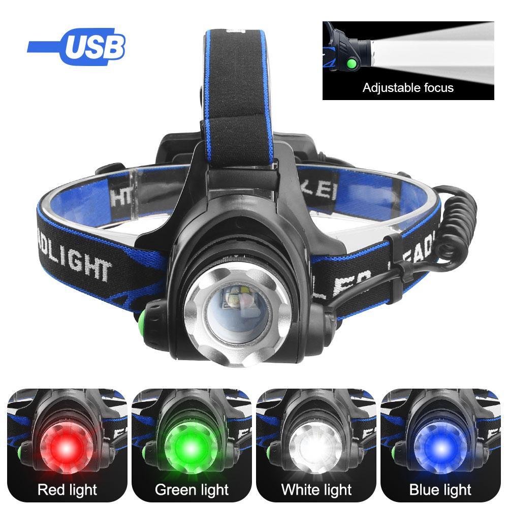 4 в 1 светодиодный налобный фонарь с регулируемым фокусом, красный + зеленый + синий + белый, масштабируемый рыболовный передний фонарик USB, красный предупреждающий свет