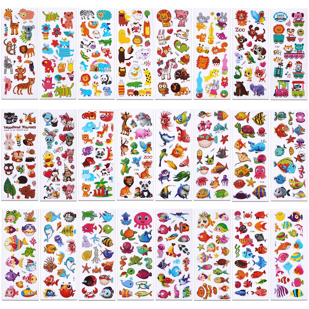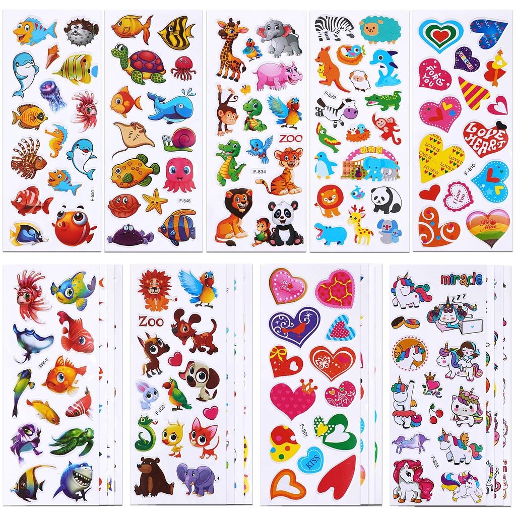 SANNIX 48 листов наклеек Наклейки с наградами Рыбы Большие объемные наклейки Наклейки с наградами в виде сердец животных Наклейки для блокнотов Морская жизнь и узор в виде сердец животных