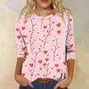 Футболка женская с рукавом 3/4, повседневная футболка с принтом ко Дню святого Валентина, джемпер с круглым вырезом