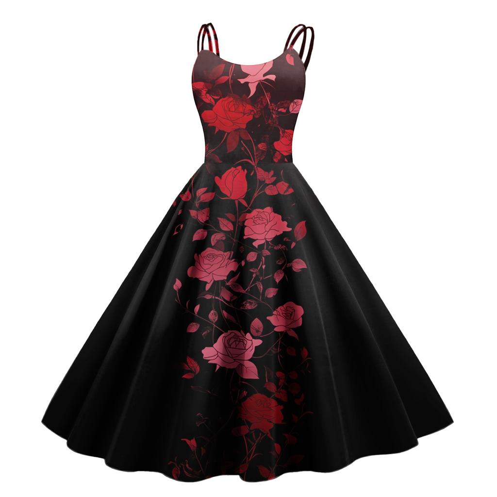 Женское сексуальное платье с открытыми плечами в стиле панк-винтаж с цветочным принтом