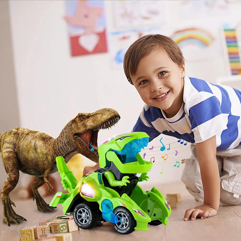 Динозавр Трансформация Машинка Игрушка Преобразование Раздвижная Трансформация Мини Тираннозавр Рекс со Светомузыкой Детская Игрушечная Машинка