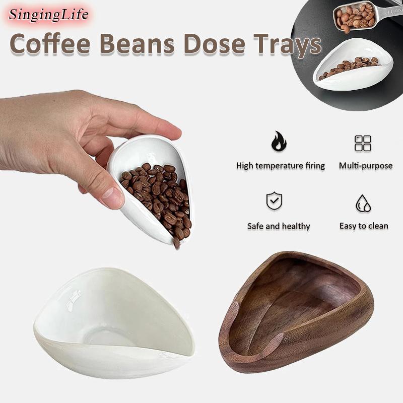 Coffee Beans Dose Trays Wooden Bean Shovel Scoops Ceramic Weighing Bean Dish Coffee Powder Measuring Tray Coffee Accessories — купить товар онлайн с бесплатной доставкой по всему миру!