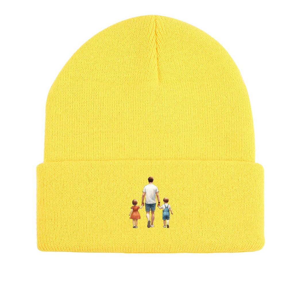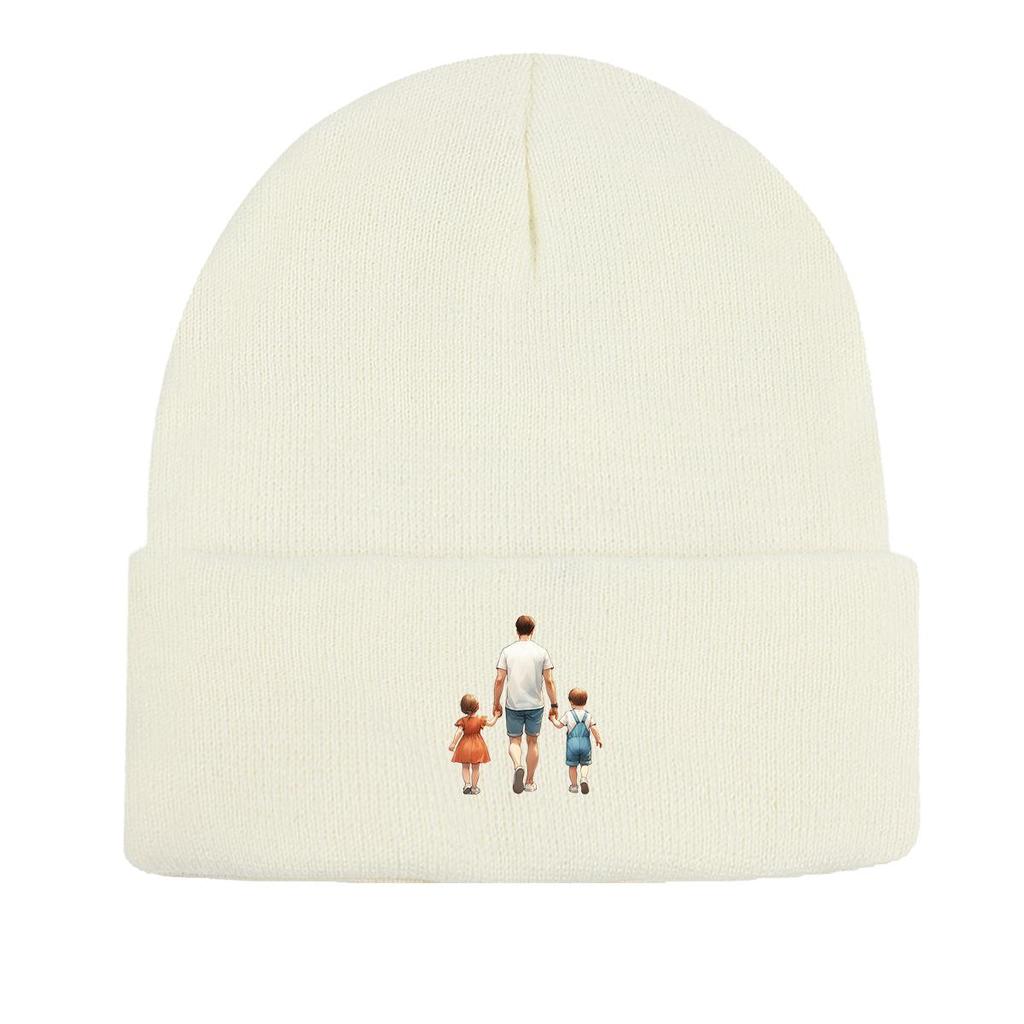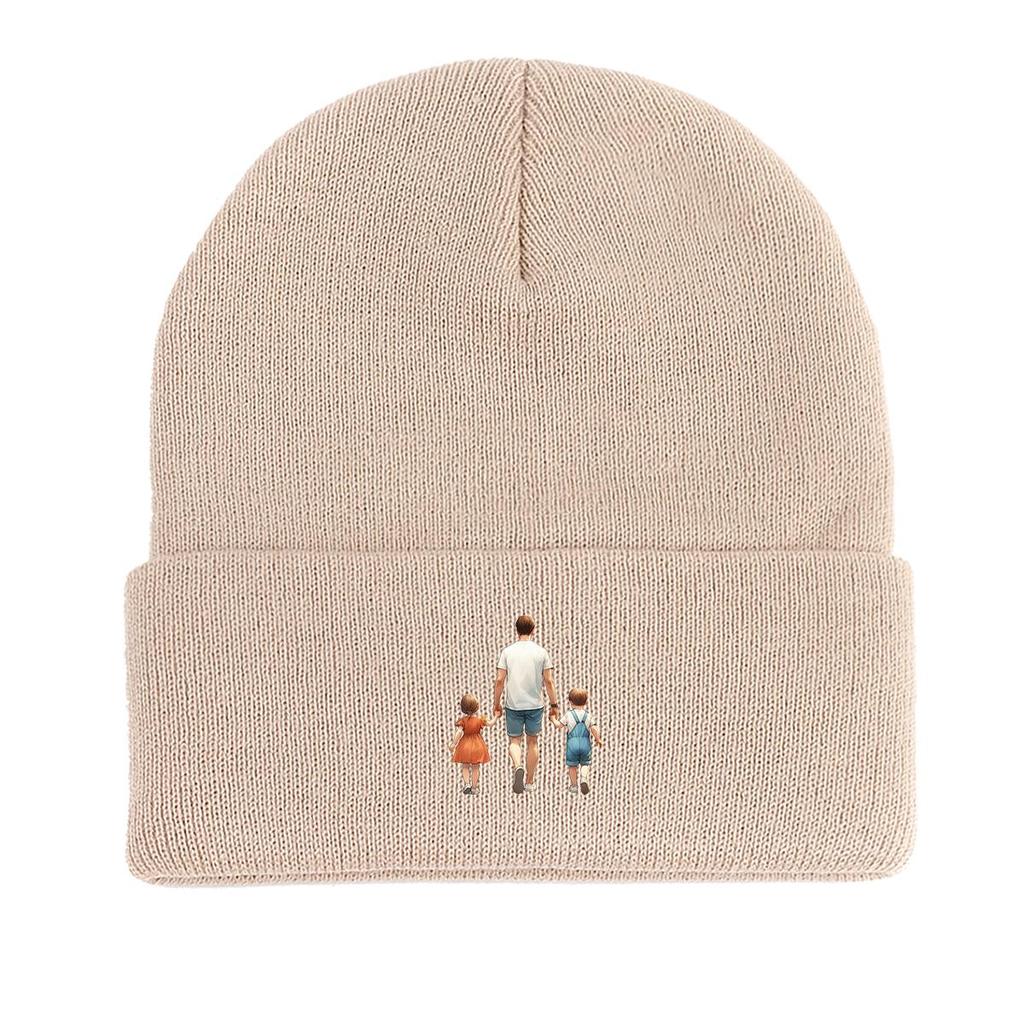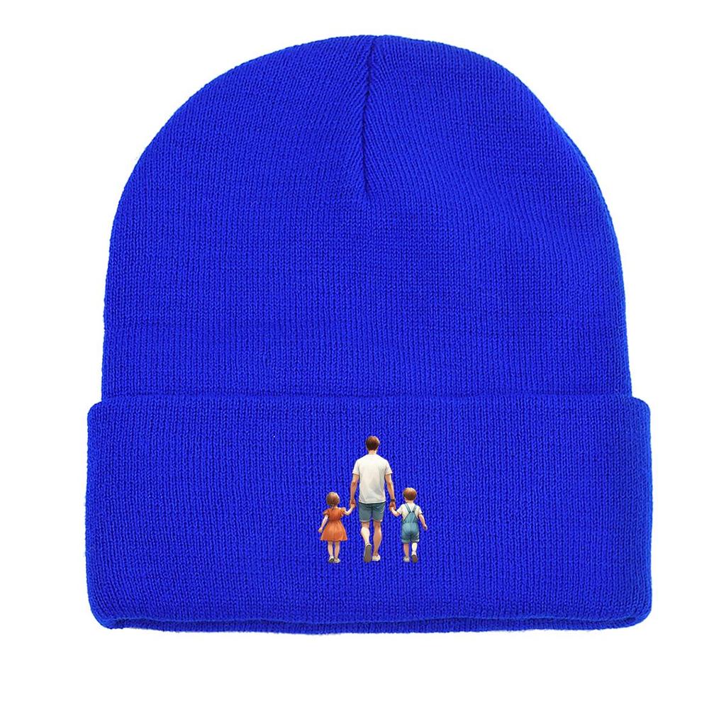 Вид сзади на зимнюю вязаную шапку-бини, семейную шапку-чепчик с манжетами, эластичную модную вязаную шапку-бини