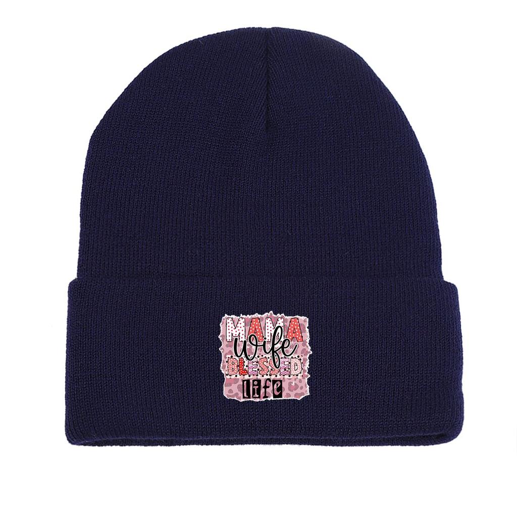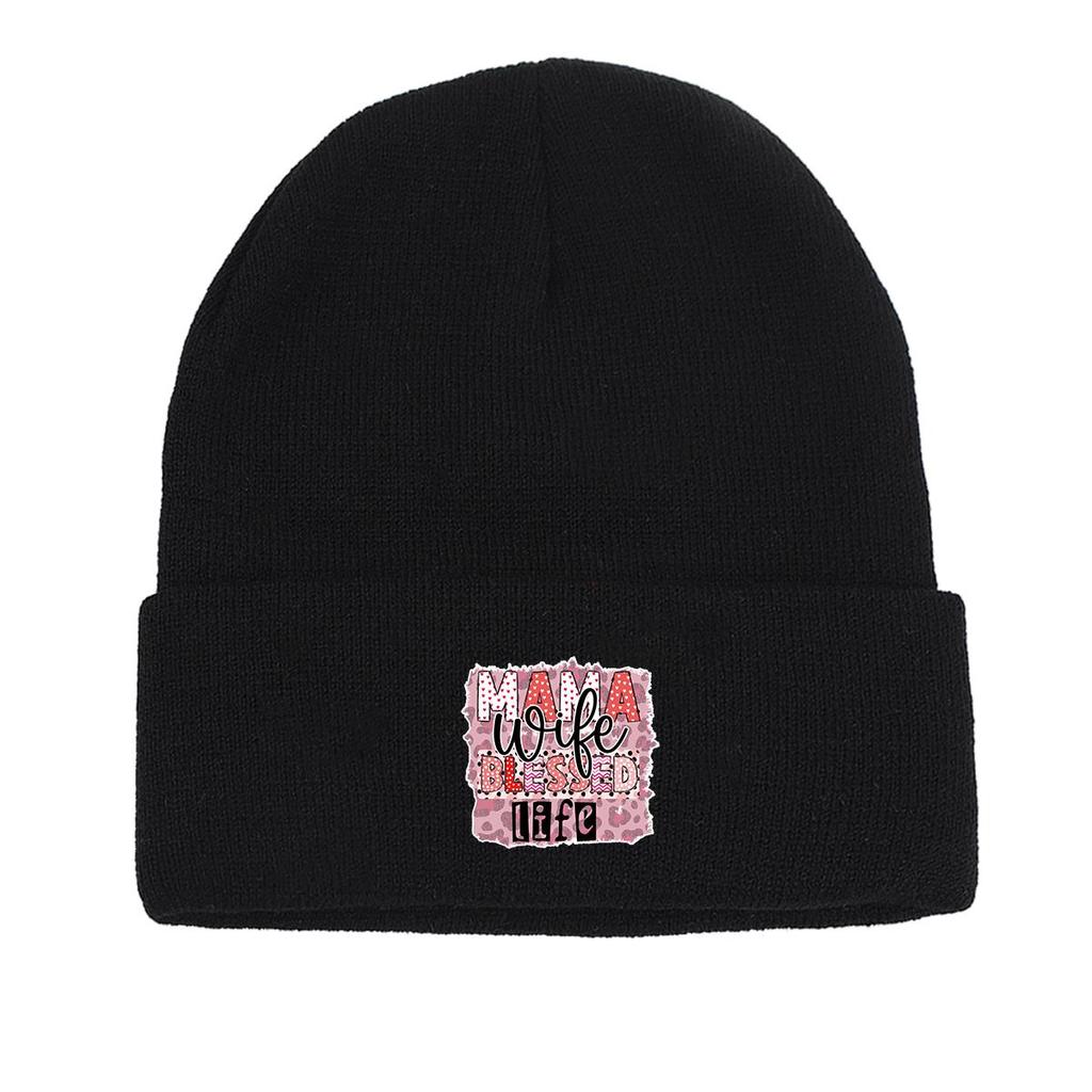 MAMA BLESSED life" Warm Knit Hat Beanie, Mother Skull Cap Stretchy Warm Stylish Gorro Knit Cap Beanie