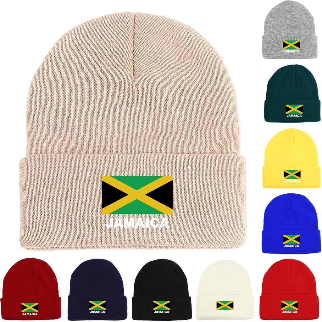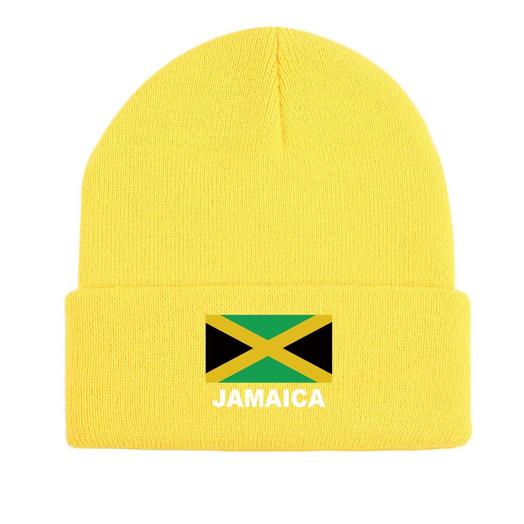 Флаг Ямайки Зимняя вязаная шапка Beanie, патриотическая шапка-череп, эластичная манжета, стильный головной убор, вязаная шапка Beanie