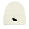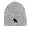 Черная зимняя вязаная шапка-бини с изображением черепа животного, термошапка с помпоном карамельного цвета, повседневная вязаная шапка-бини