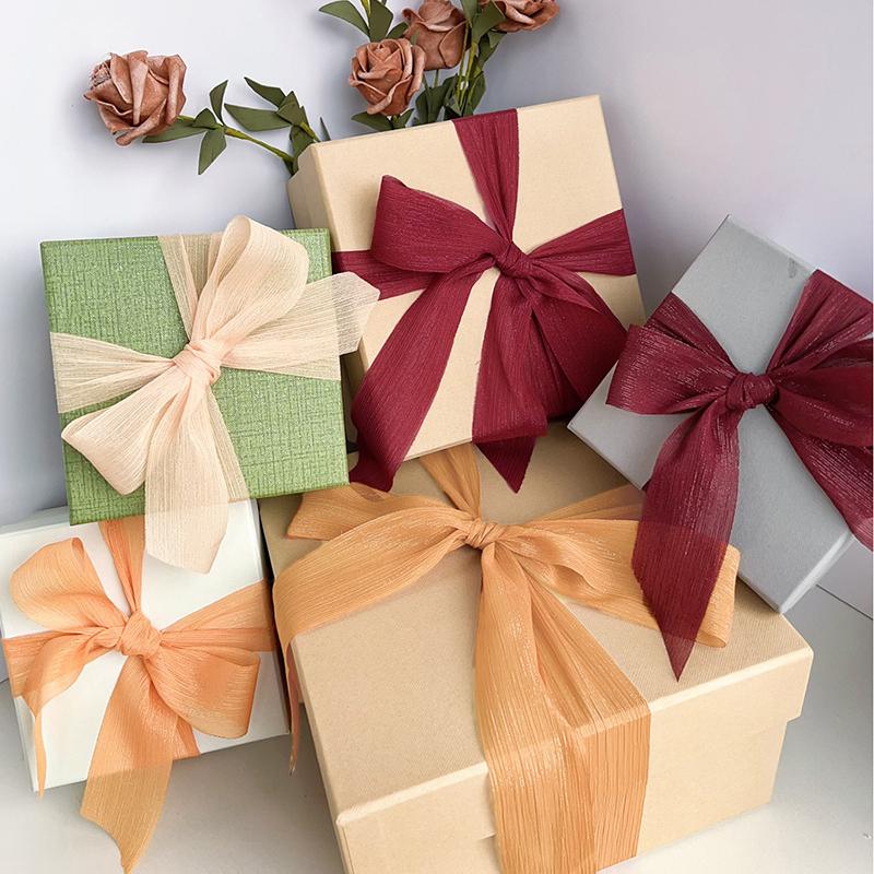 4см*5м Подарочная упаковка Букет Однотонный Ручной работы DIY Шифоновая Мятая Ленты для упаковки коробок Торт Полупрозрачные Аксессуары