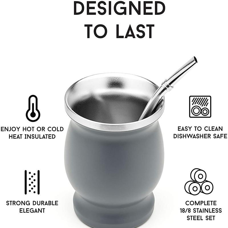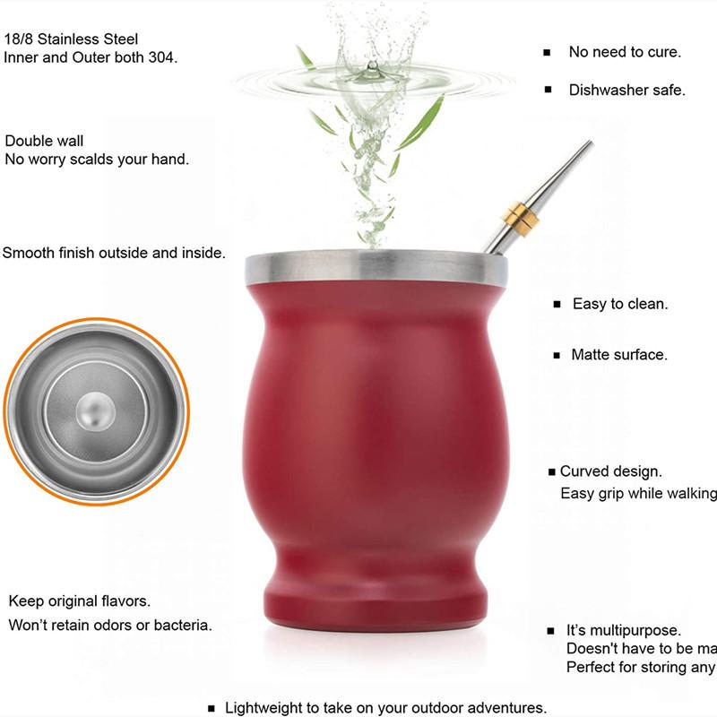 Набор для мате объемом 230 мл включает в себя чашку для мате из нержавеющей стали с двойными стенками 18/8 и одну бомбилью мате (Солома)Щетка для чистки