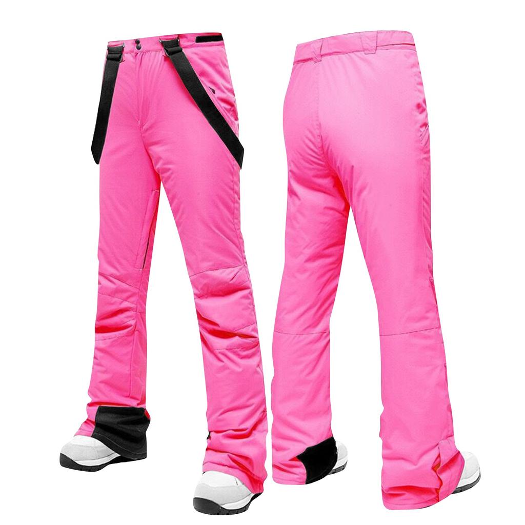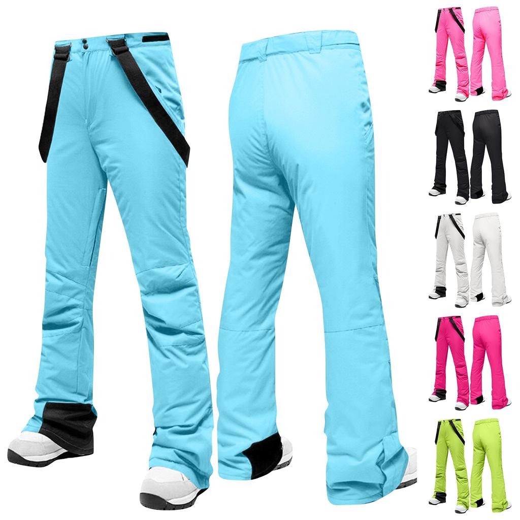 Женские однотонные теплые толстые водонепроницаемые брюки с карманами и ремешком для лыж для женщин