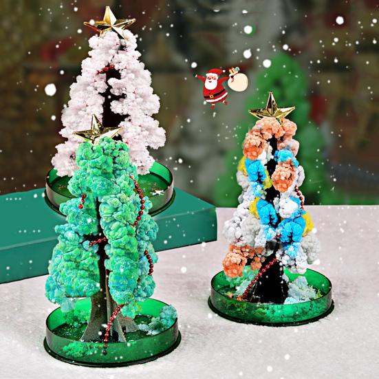 Преобразите свой праздничный сезон с нашим волшебным набором для рождественской елки. Установка очень проста — просто соберите бумажное дерево, закрепите его в поддоне и залейте волшебным раствором.. Через 8 часов вы увидите, как ваше дерево засияет яркими кристаллоидами, становясь со временем еще пышнее.. Это увлекательное занятие пробуждает любопытство и интерес у детей, предлагая образовательный и развлекательный опыт.. Посмотрите, как загораются их глаза, когда они наблюдают за ростом кристаллоидов, открывая для себя чудеса науки и природы.