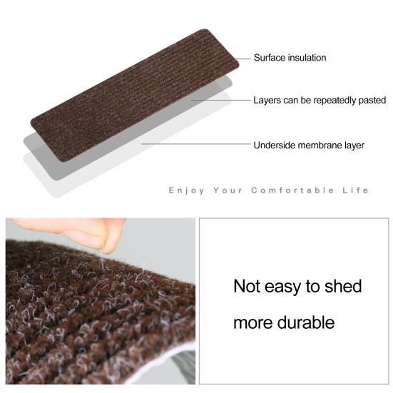 Повысьте комфорт и стиль вашей лестницы с помощью наших мягких и плюшевых ковровых ступеней.. Эти лестничные ступени, разработанные для обеспечения комфорта и снижения шума, дарят ощущение роскоши под ногами.. Простая в установке конструкция оснащена съемным клеем, который обеспечивает легкую установку и перемещение без каких-либо остатков или повреждений, что делает их идеальными для деревянных или внутренних лестниц.