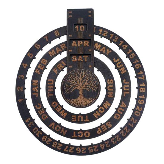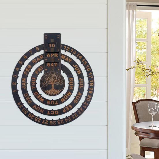 Устойчивое деревянное строительство: Изготовленный из высококачественной древесины, этот вечный настенный календарь излучает элегантность и экологичность, сочетая в себе вневременной стиль и экологичность, что делает его прекрасным дополнением к интерьеру любого дома или офиса.