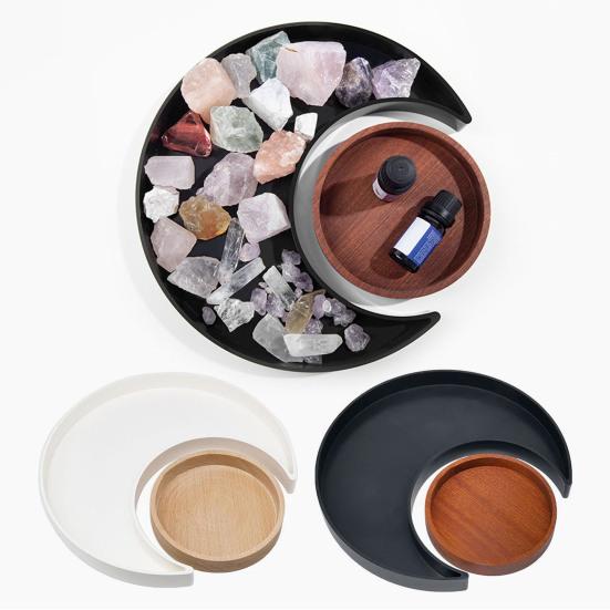 Представляем изысканный лоток для хранения, изготовленный из дерева и АБС-пластика для прочности и долговечности.. Этот универсальный лоток для украшений предназначен для аккуратного хранения мелких предметов, таких как ювелирные изделия, ключи и конфеты, добавляя элегантности вашему пространству.. Поднос состоит из двух частей: части в форме луны, символизирующей луну, и круглой части, символизирующей солнце, что делает его очаровательным декоративным элементом.
