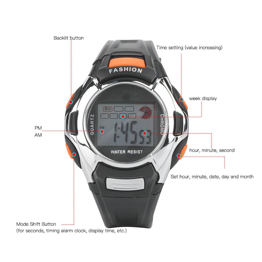 Многофункциональные электронные наручные часы цифровые светящиеся детские спортивные часы для мальчиков и девочек (черный)