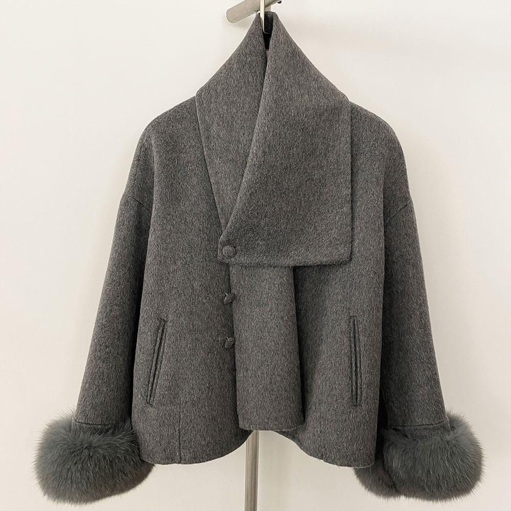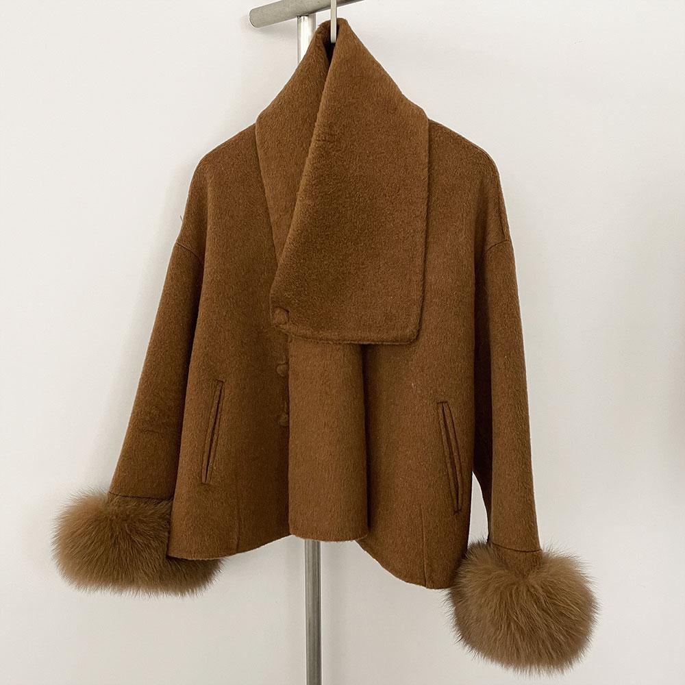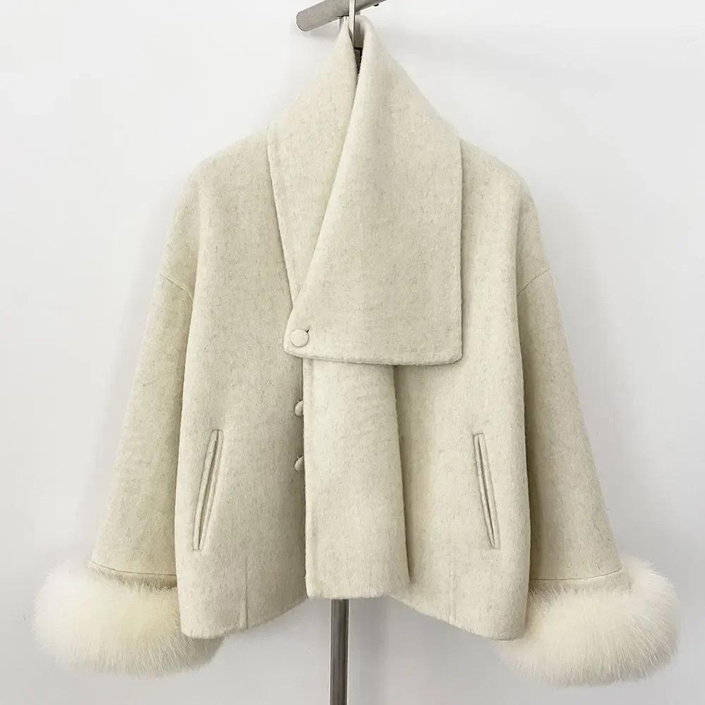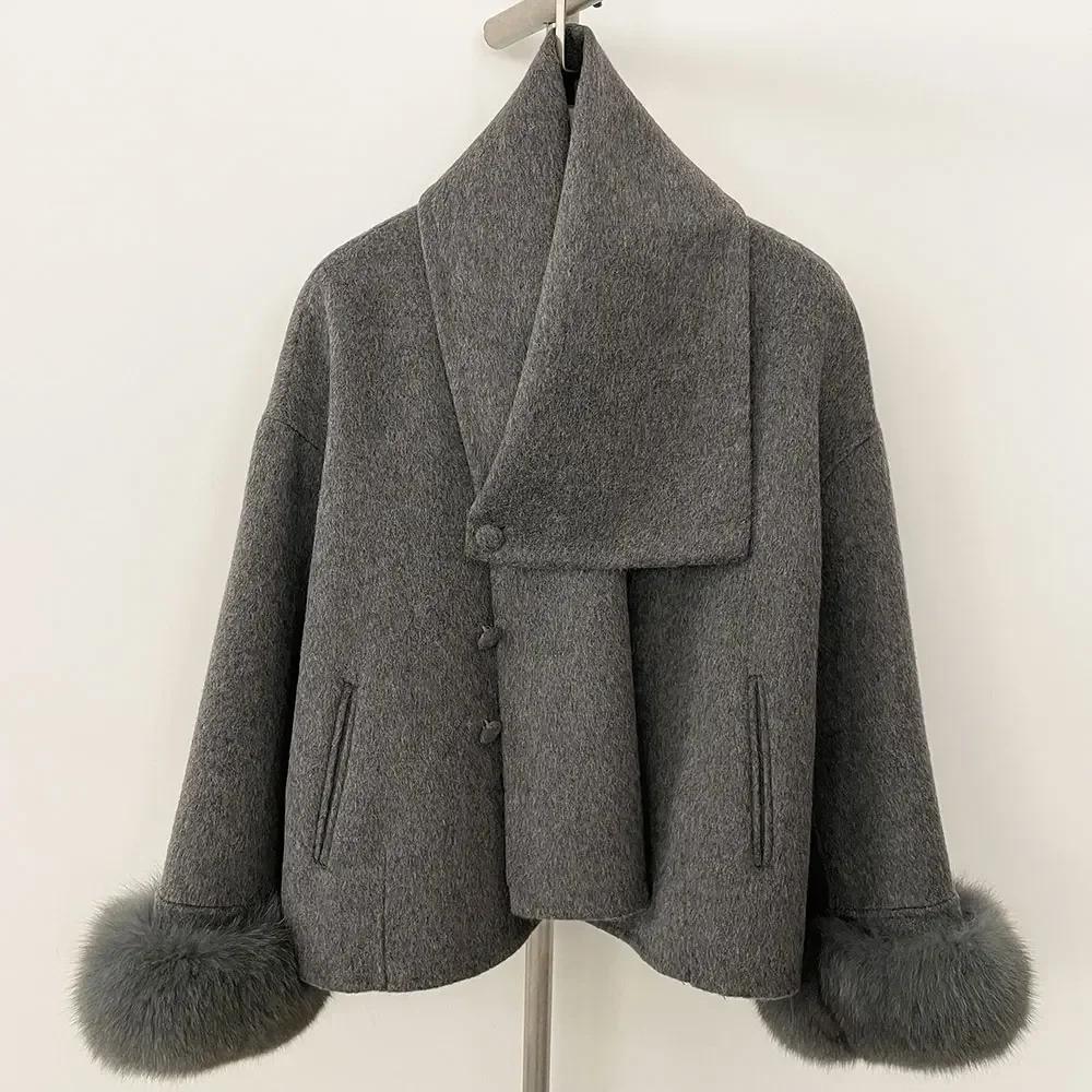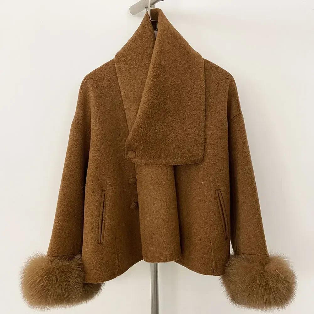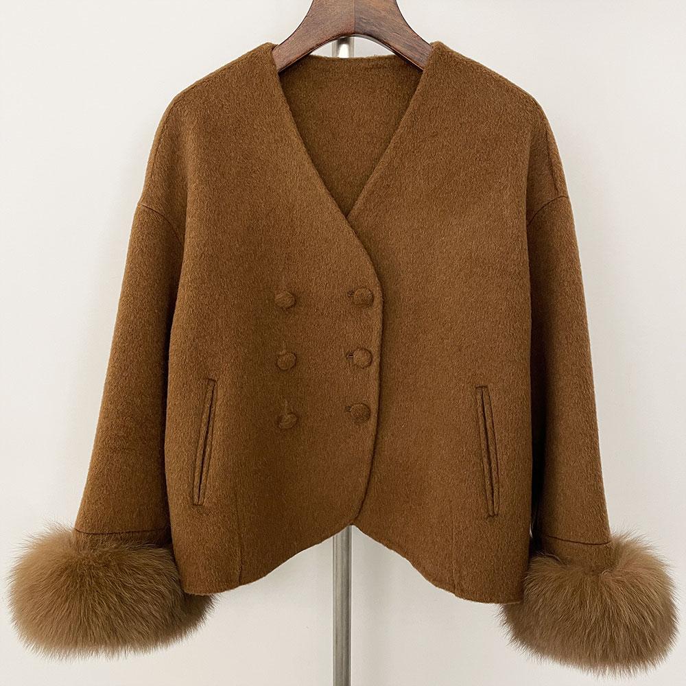 OFTBUY 2024 Осень Зима Женское Пальто Натуральный Мех Лисы Манжеты Двусторонняя Шерстяная Смесовая Куртка Толстая Теплая Повседневная Новая Верхняя Одежда