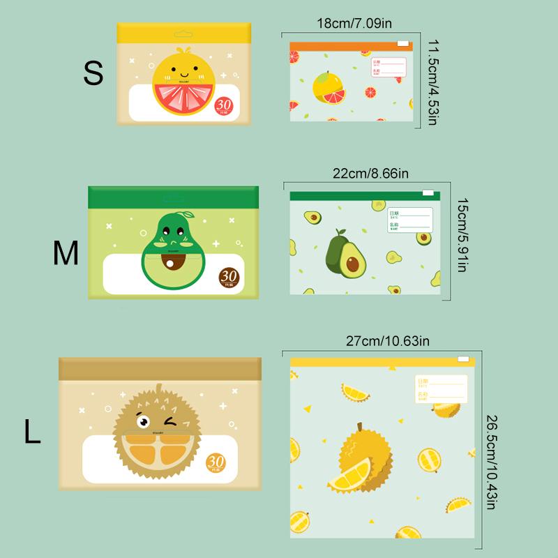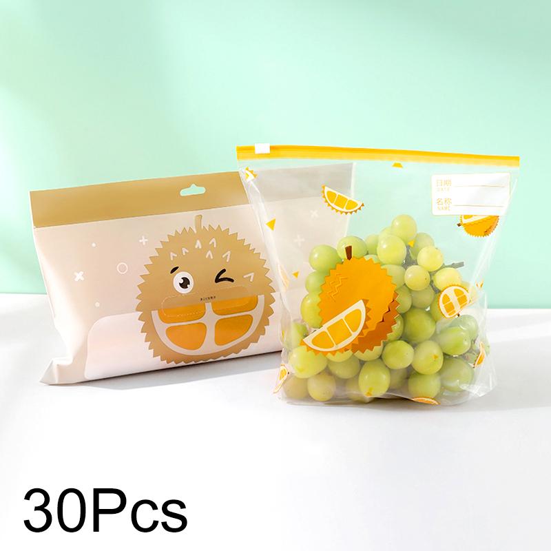 30 шт./упак. влагонепроницаемый мешок для хранения свежих продуктов на кухне, многоразовый, подвесной, герметичный, с рисунком из мультфильмов, с замком-молнией