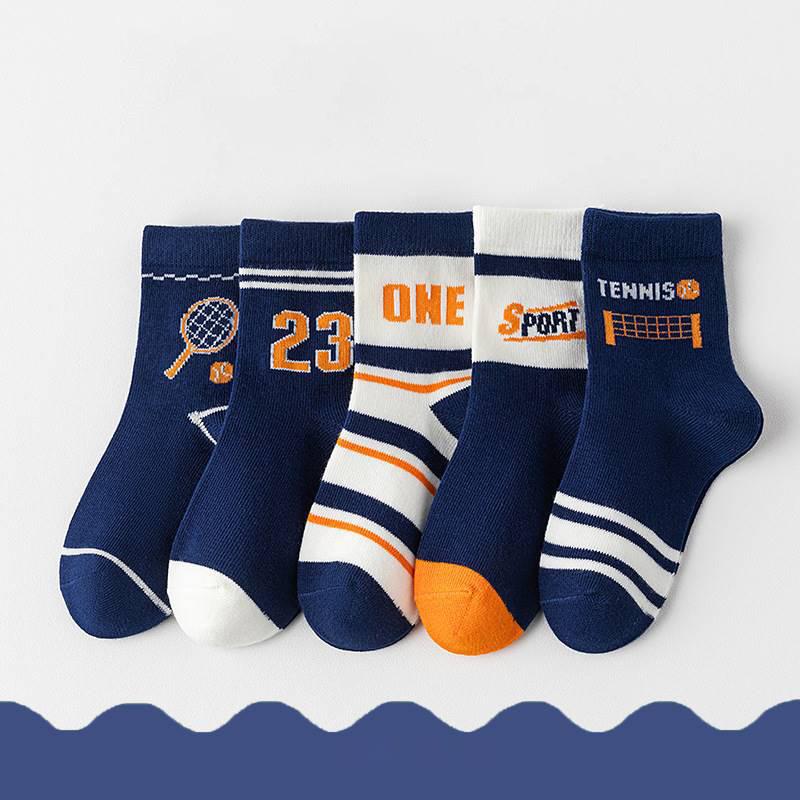 5 пар детских носков для мальчиков, теннисная серия, детские спортивные носки для школьников, весна-осень, мягкие хлопковые носки средней длины для малышей — купить товар онлайн с бесплатной доставкой по всему миру!