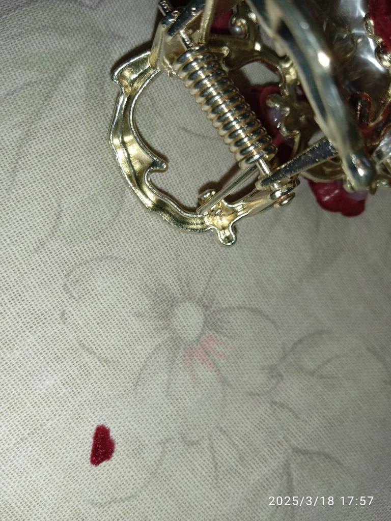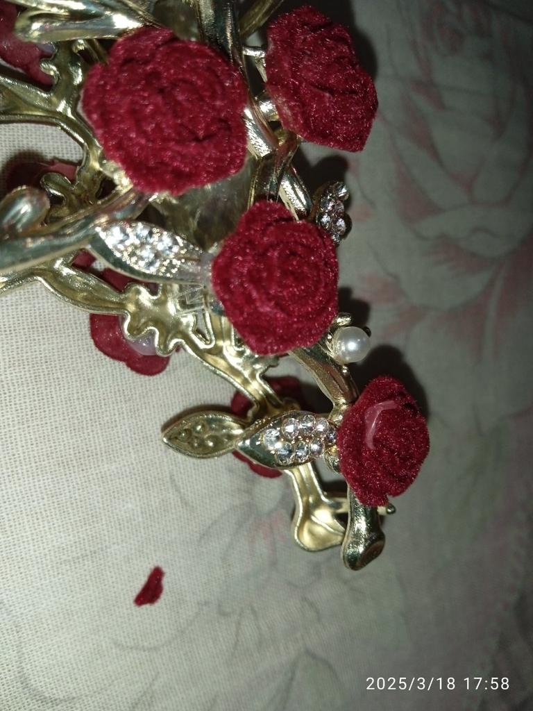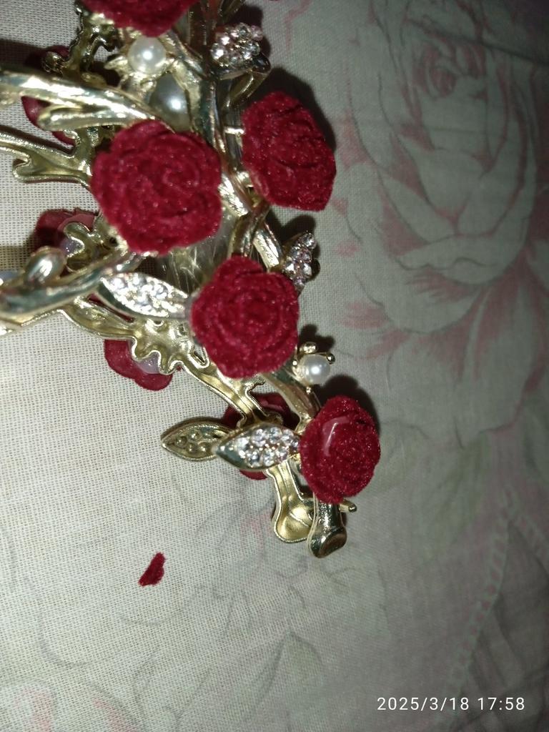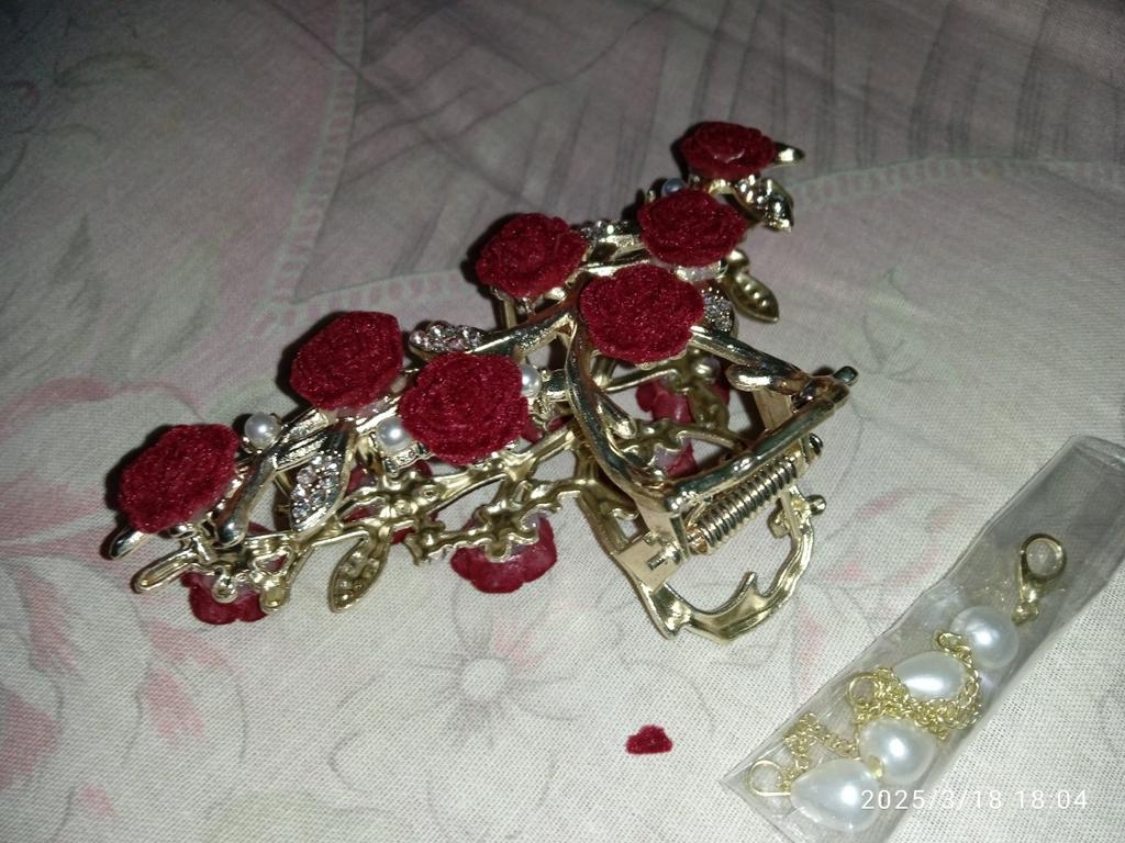 Заколка красивая, но на 2 розочках обломаны лепестки, правда на втором цветке дефект менее выражен, поэтому на фото я его не показываю. И качество заколки тоже не очень, как минимум потому что розы очень хрупкие. К тому же, один обломаный лепесток есть в упаковке, а второго вообще не было. Честно говоря, носить такую заколку достаточно неловко. Большое спасибо Joom, что вернул деньги