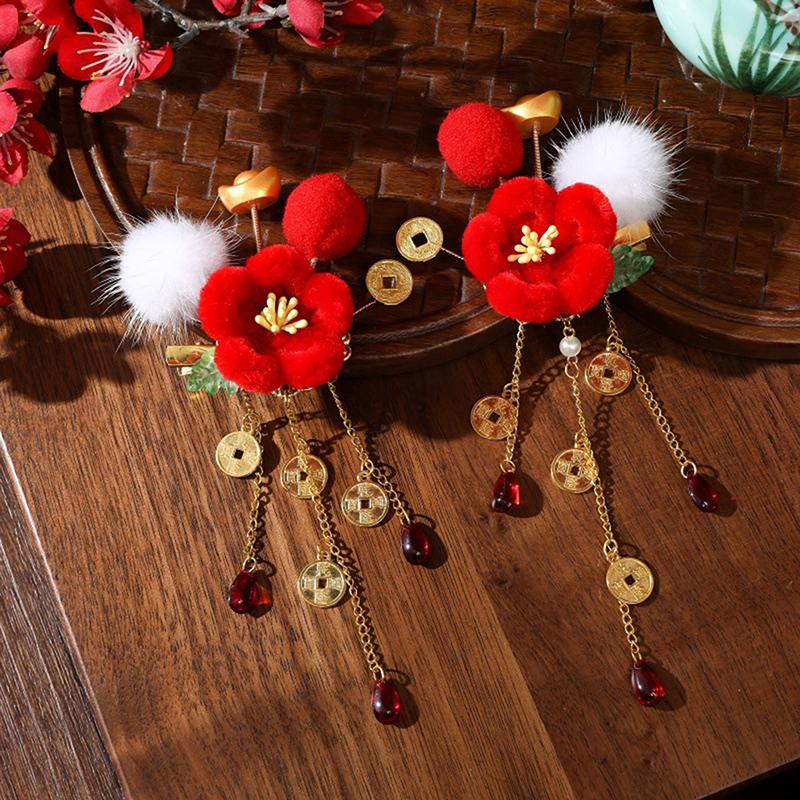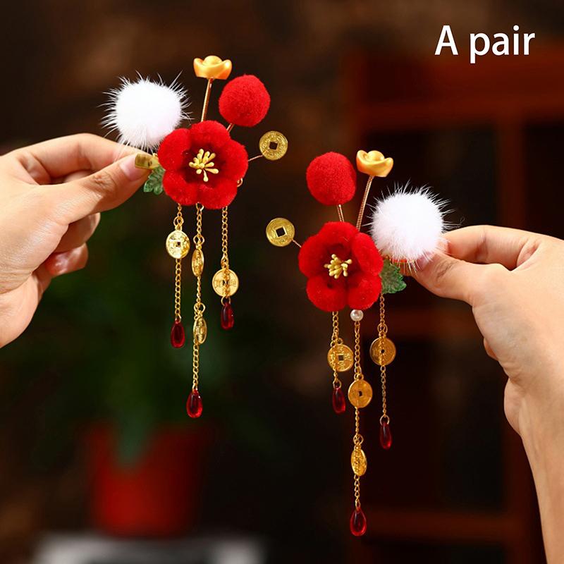 Пара детских движущихся заколок для волос в виде слитков, праздничные новогодние шарики для волос, аксессуары для волос с кисточками, приносящие удачу