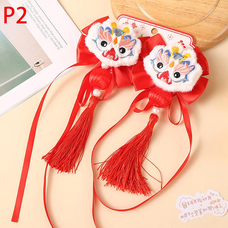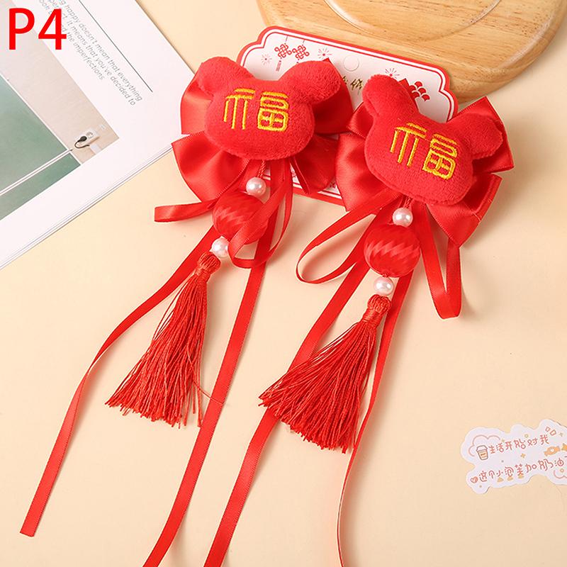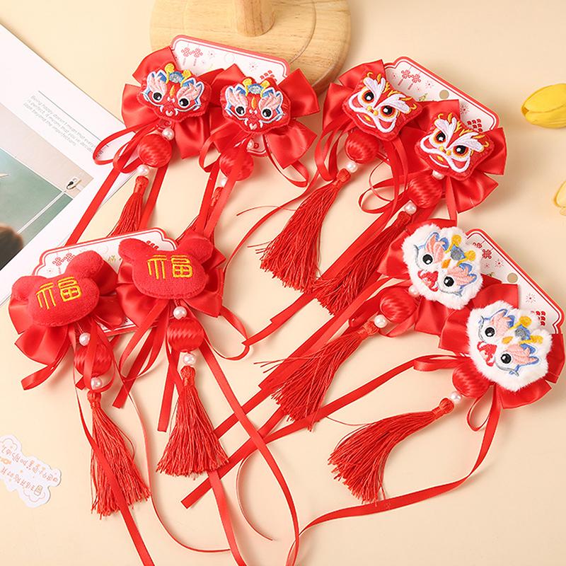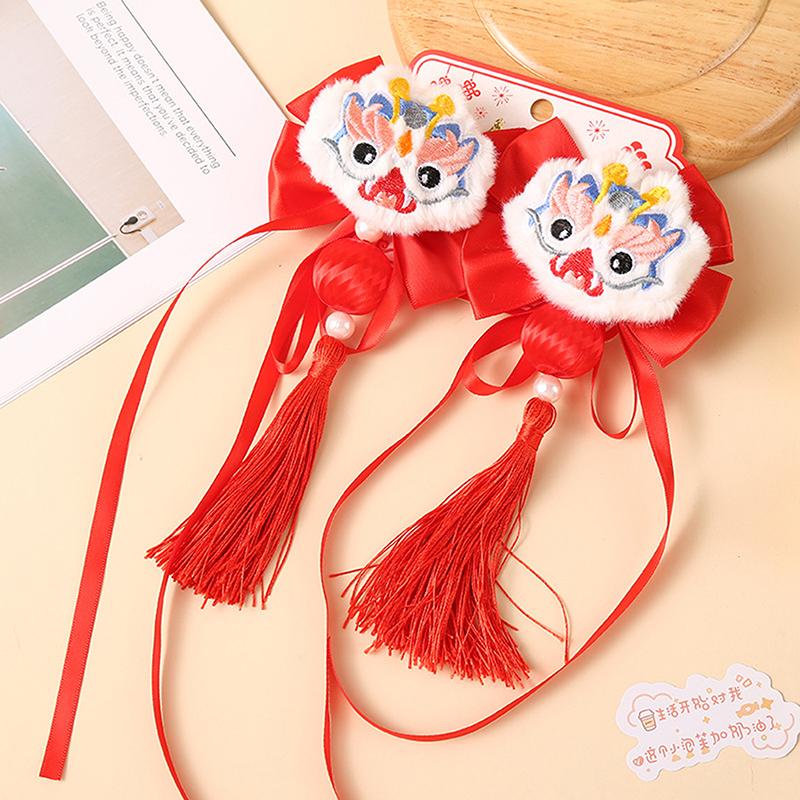 Аксессуары для волос Детская годовая заколка для волос Ханьфу головной убор в форме тигра год заколки китайский стиль кисточка красный бант заколка для волос