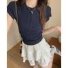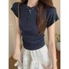 Французское лето однотонная рубашка на пуговицах с прямым плечом, полуоткрытым воротником, коротким рукавом, приталенная футболка с рукавом реглан для женщин
