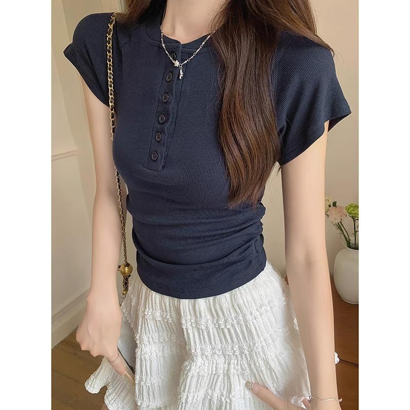 Французское лето однотонная рубашка на пуговицах с прямым плечом, полуоткрытым воротником, коротким рукавом, приталенная футболка с рукавом реглан для женщин — купить товар онлайн с бесплатной доставкой по всему миру!