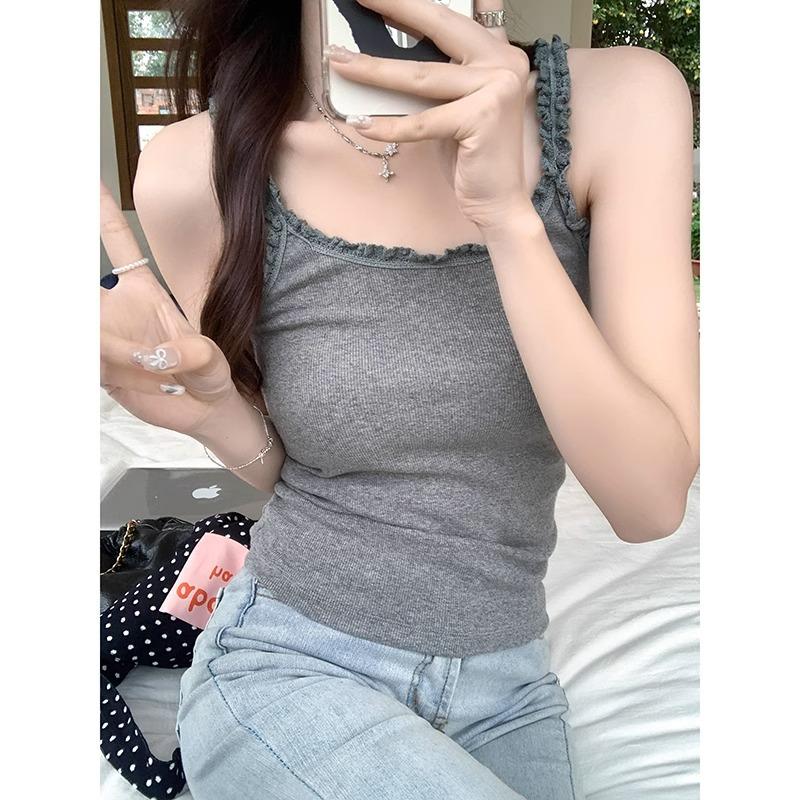 Синий допамин кружево чистое желание маленькая майка женская красотка bm узкая талия короткий внешний летний топ